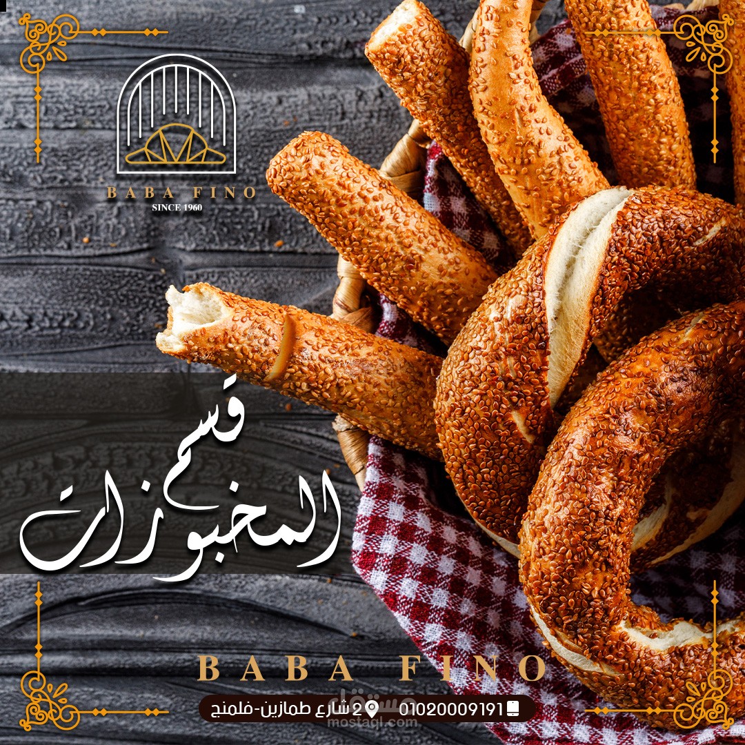 تم الانتهاء من تصاميم سوشيال ميديا لمحل مخبوزات Baba Fino