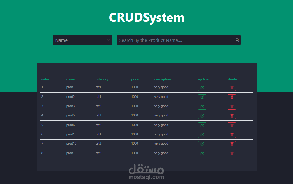 عبارة عن CRUD system لاضافة المنتجات وحفظها وعرضها وحذفها مع تصميم انيق بالاضافة الى الية بحث سريعة تساعد لكي تجد المتج بأسرع ما يمكن