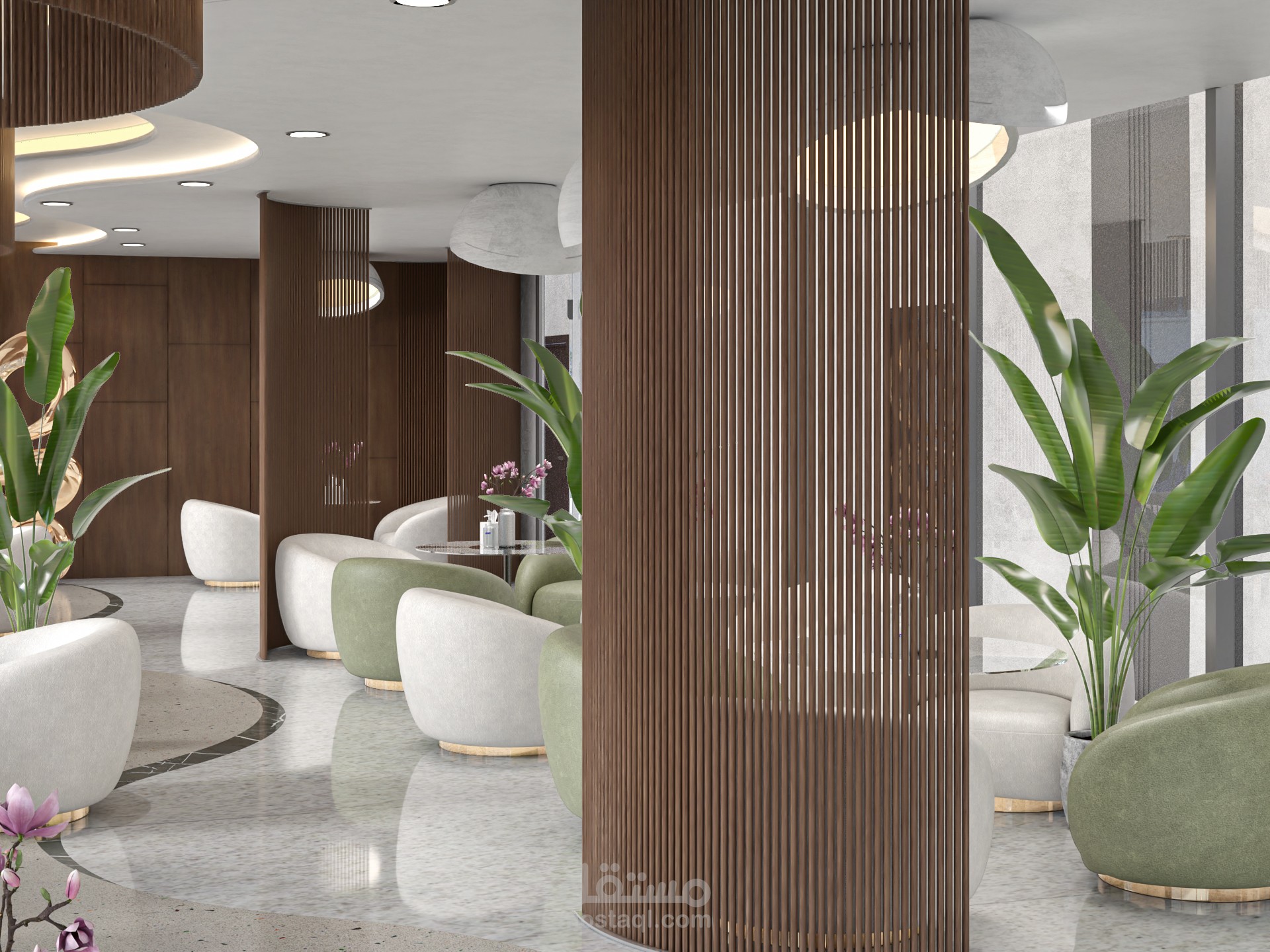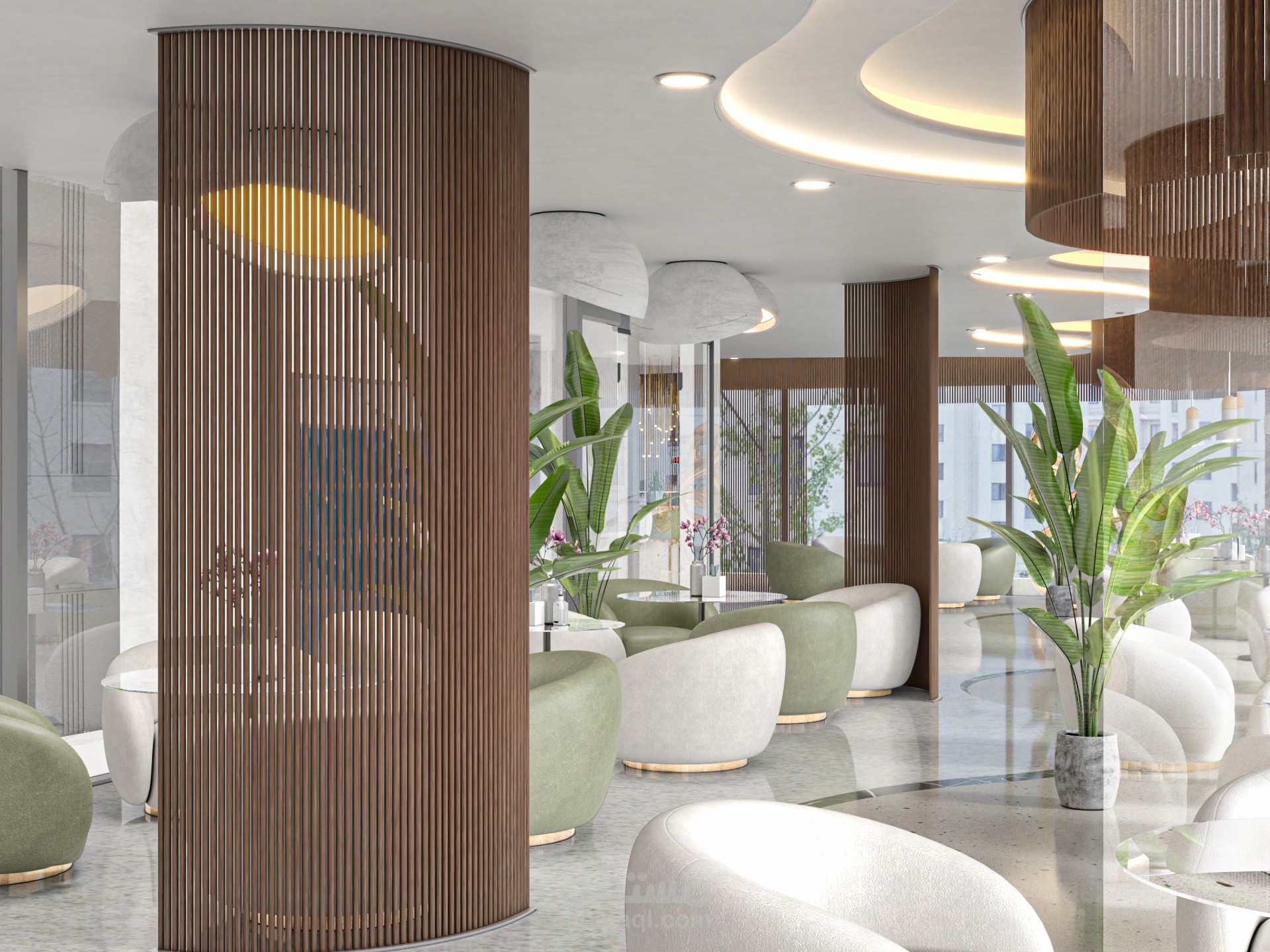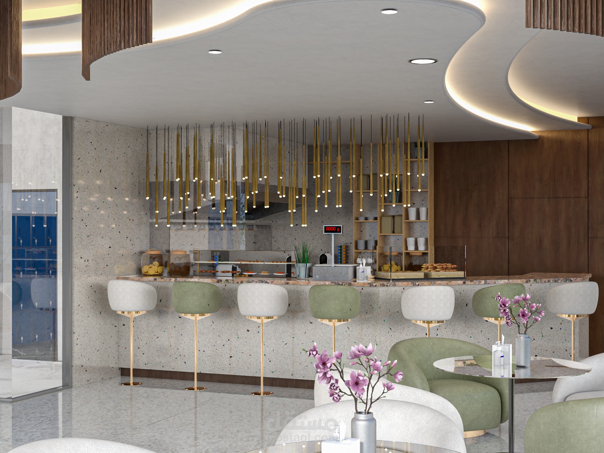 تصميم صالة طعام لفراغ طولي بشركة بالامارات