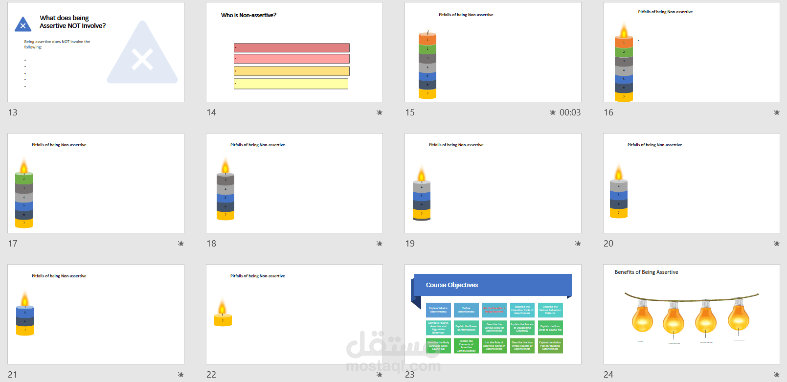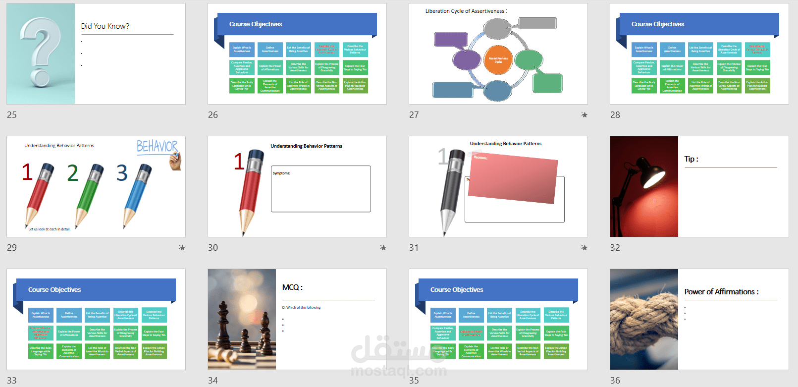 صممت عرض تقديمى لمحتوى تدريبى ( Assertiveness skills ) عن طريق برنامج Power point .