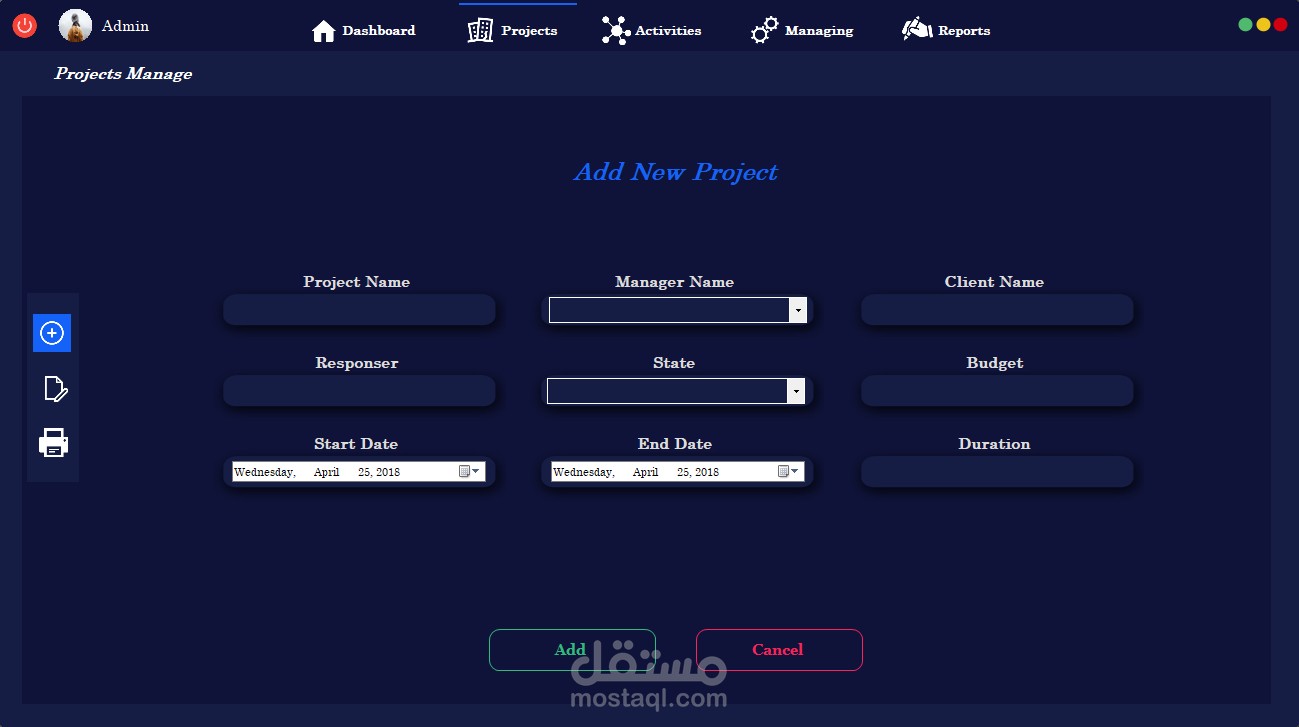 PMS Is A Windows Application, Project Management System Architectural And Building Materials And Project Budget Tracking And Activities. The App Include Accounting ,Stock ,HR ,Expenses ..Etc Reporting With It Friendly User Interface