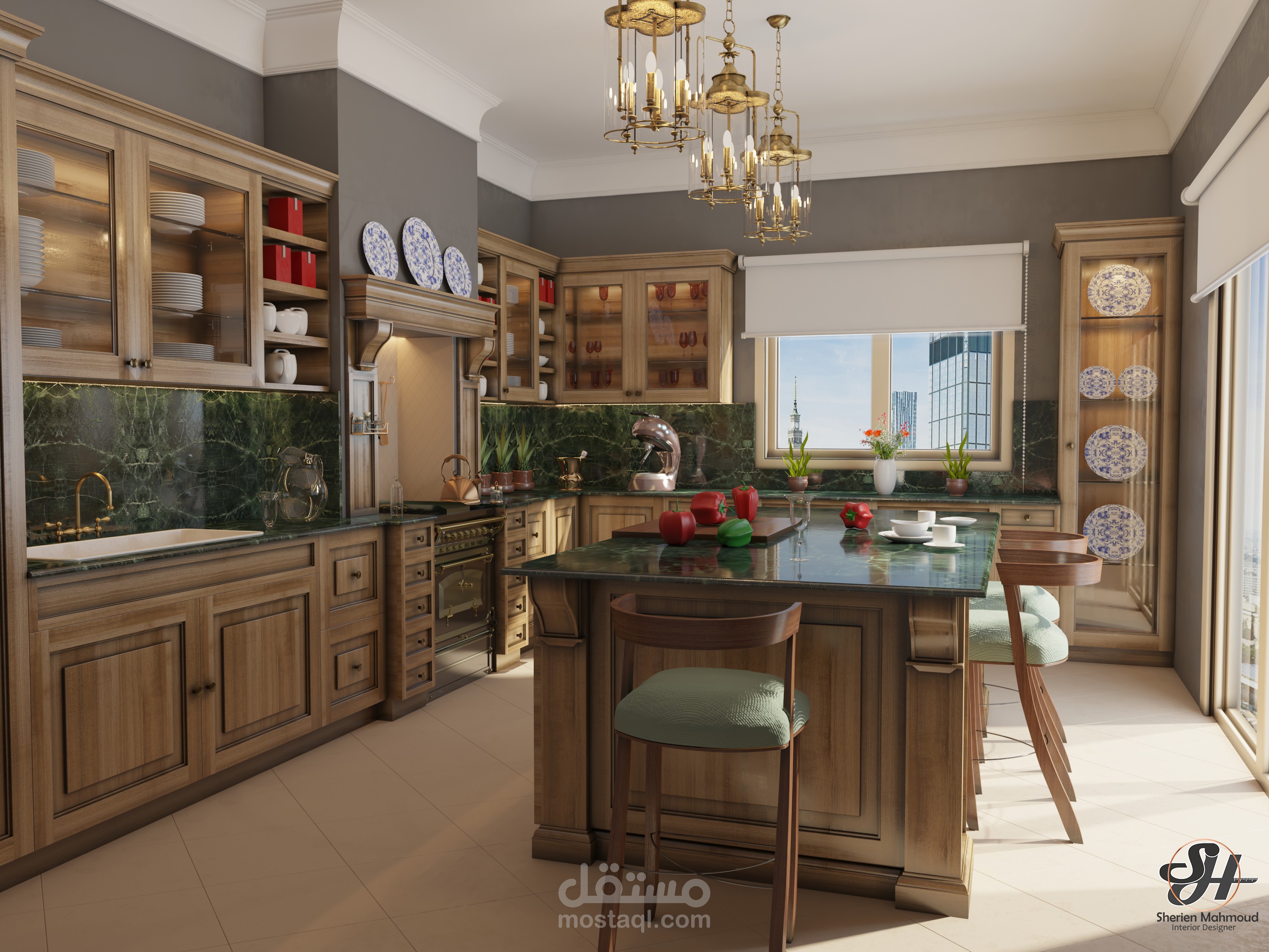 An elegant and classy mix of materials from gold and wood for style of modernism that makes the space comfortable and classy.