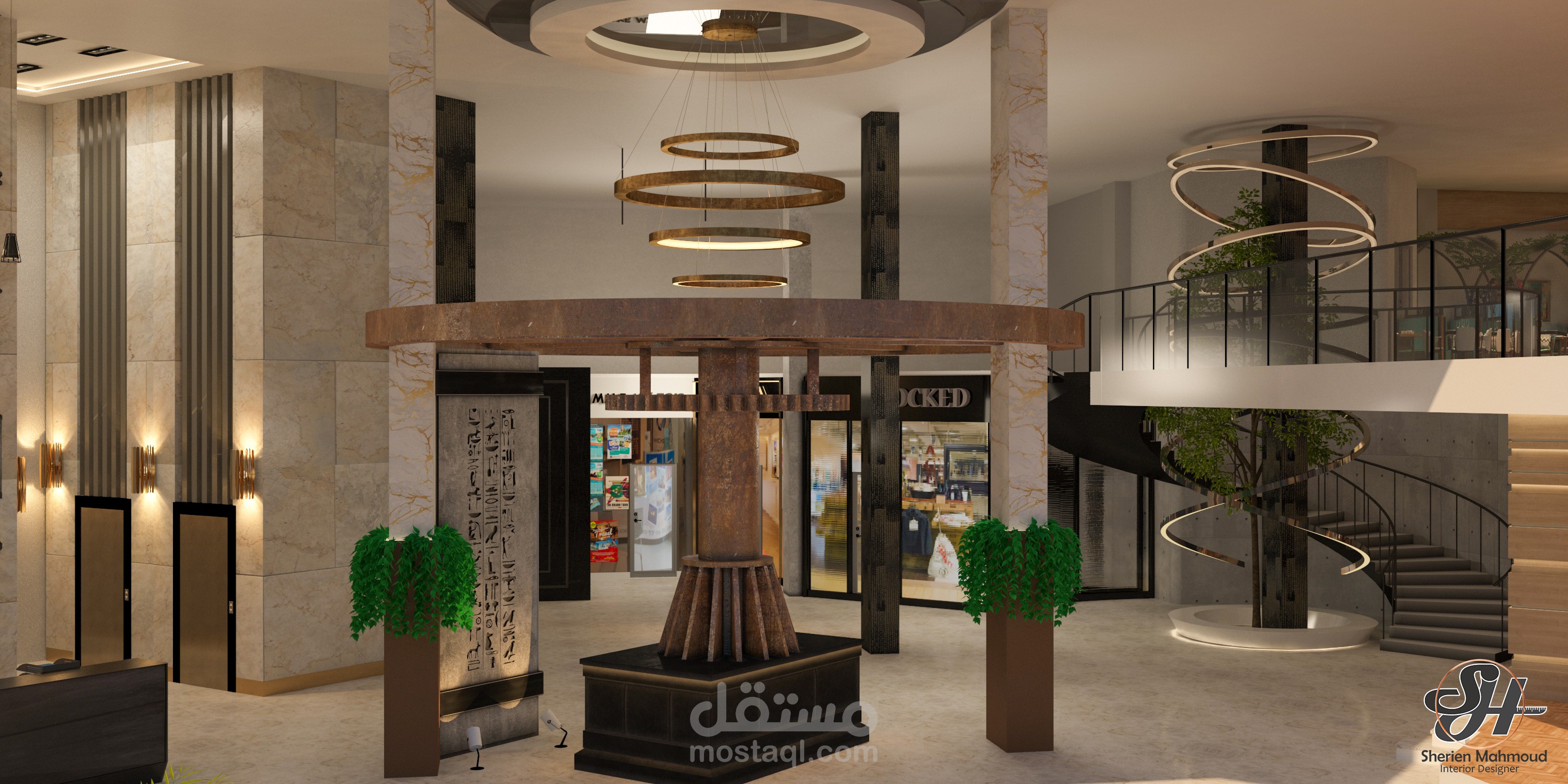 The design is all build up in a city based in the center of Egypt but doesn’t contain and type of monuments of the Ancient Egyptian so the concept was based on catting the eyes of people entering the hotel on the nostalgia of these historical elements but in modernism view.