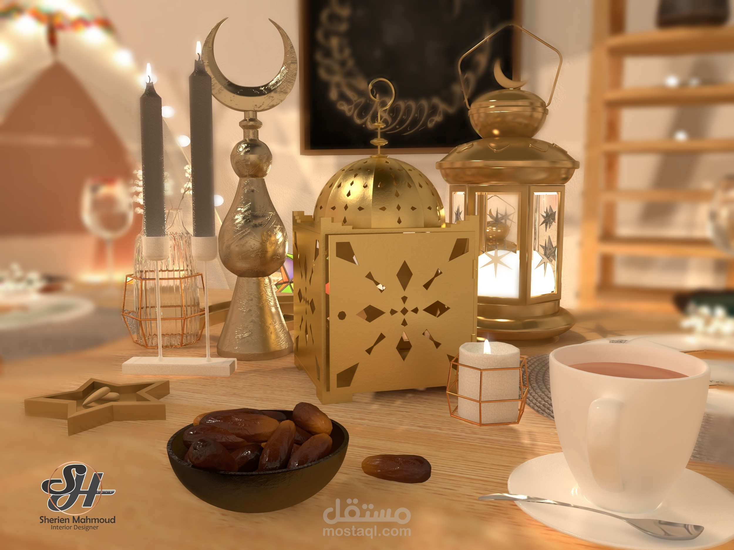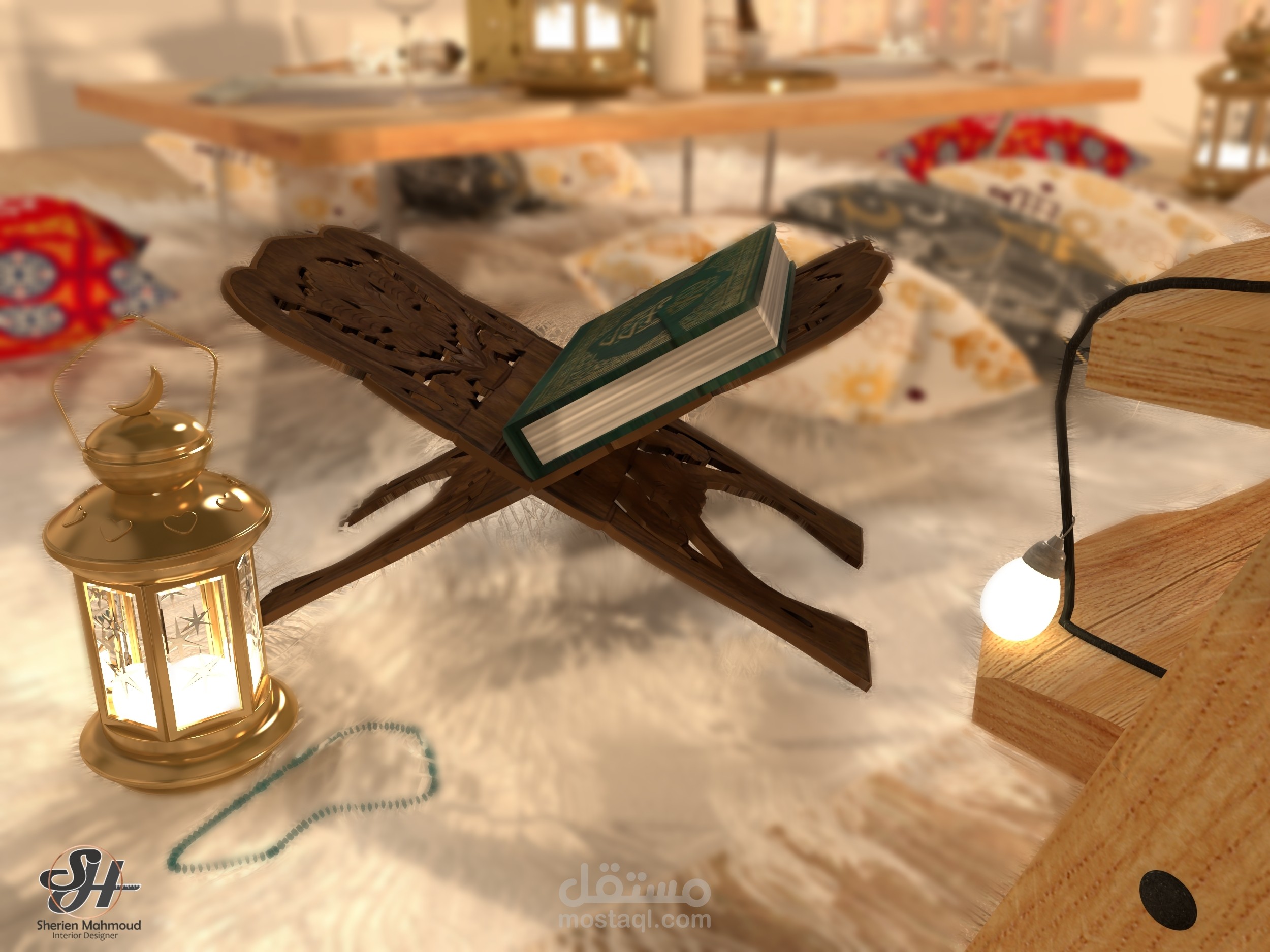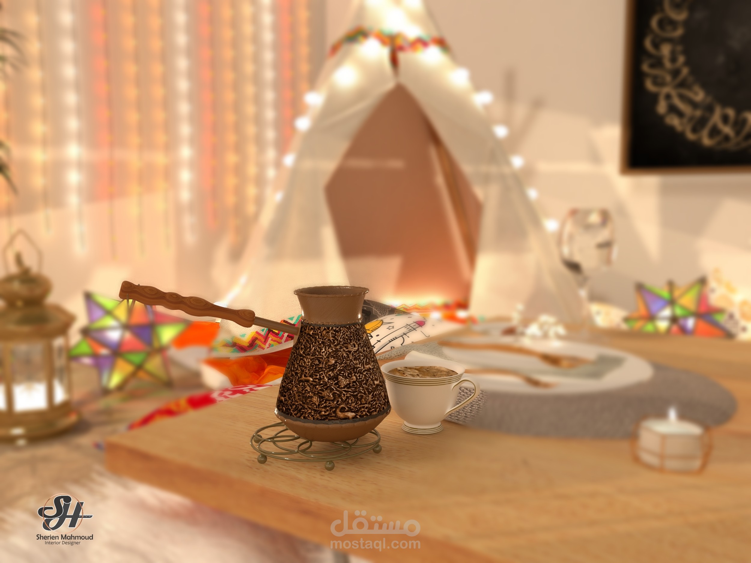 Designing a corner for gathering and having suhoor or iftar. Spending a cozy night in surrounding vibes of Ramadan and prayers.