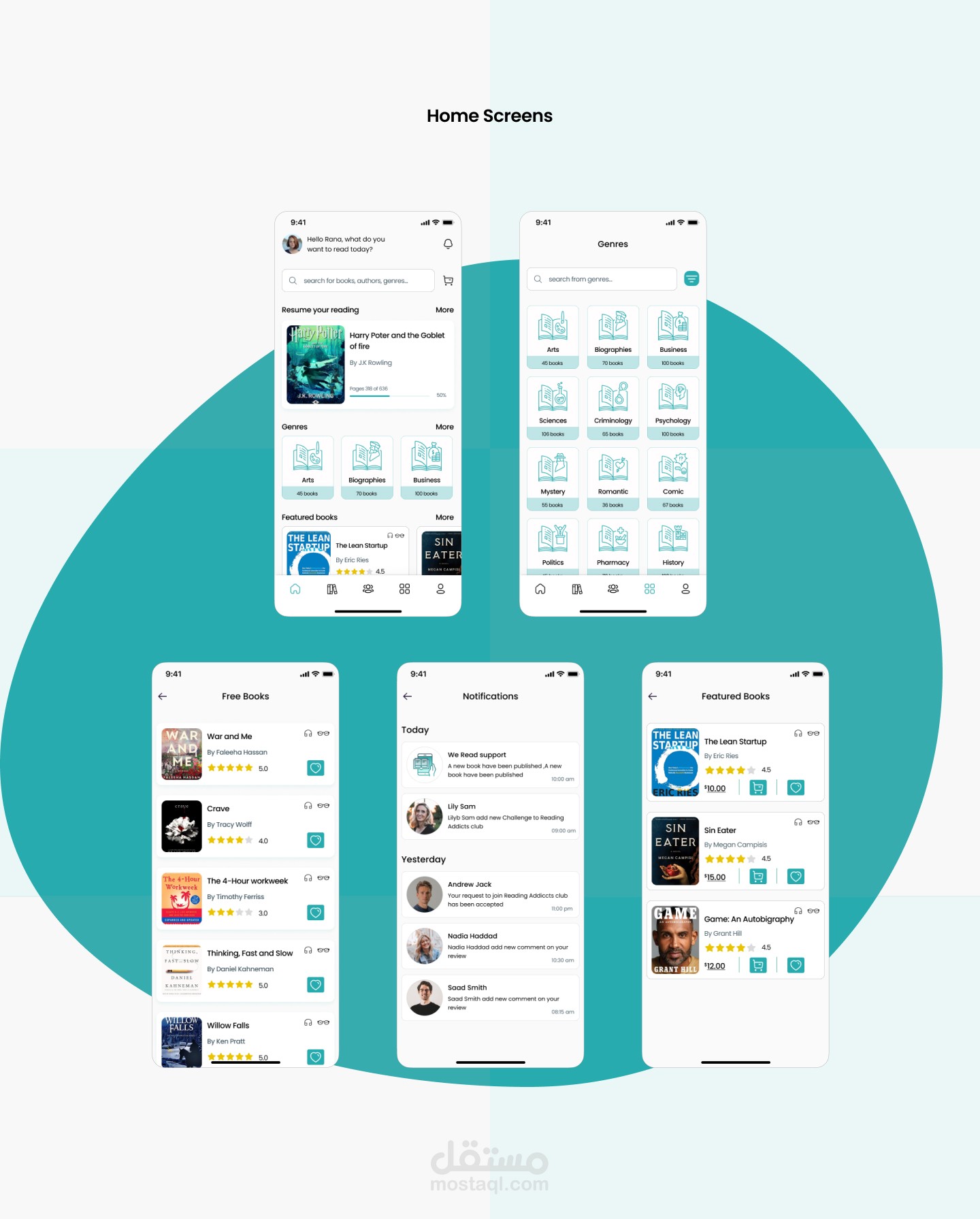تصميم تطبيق متجر كتب بخصائص متعددة