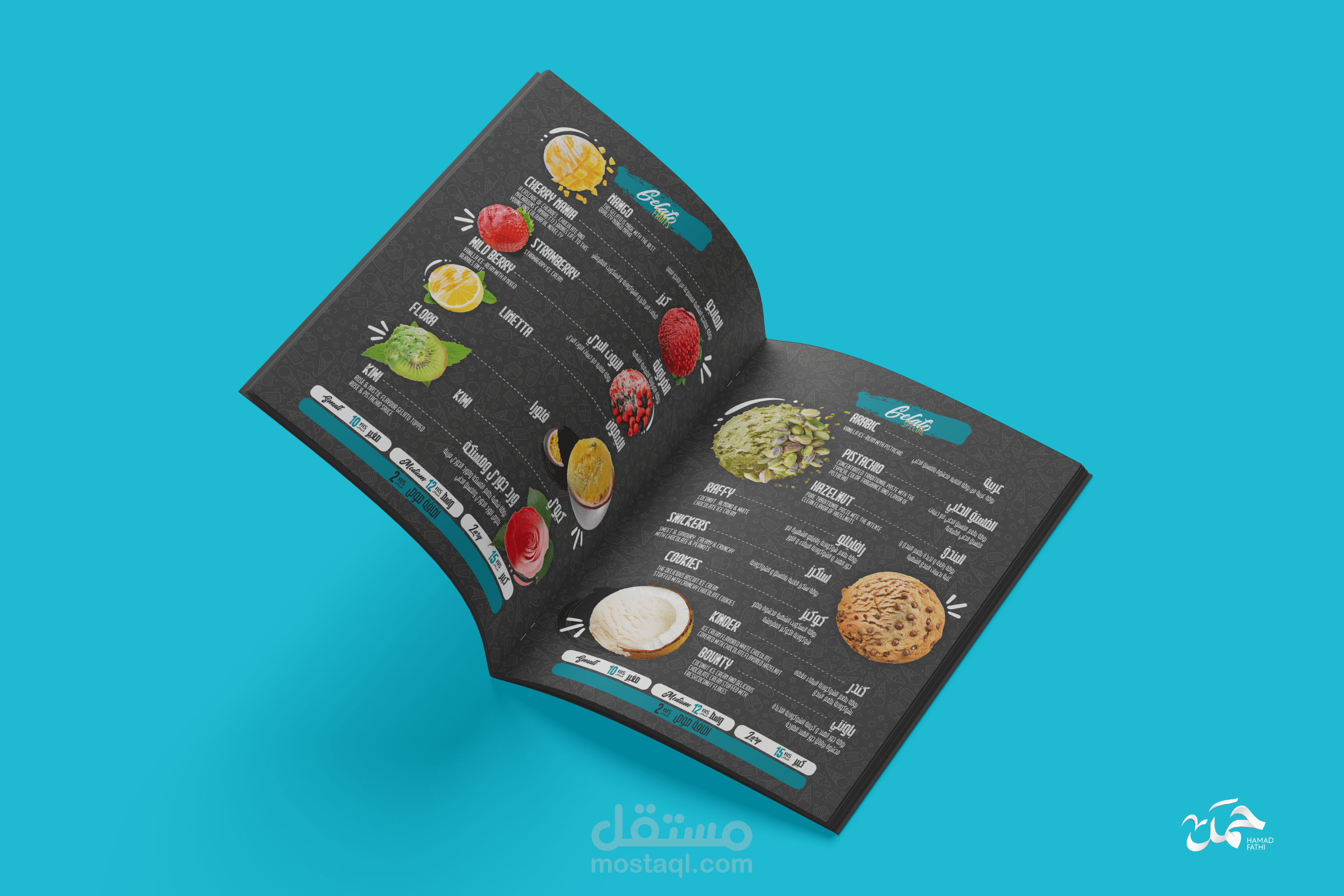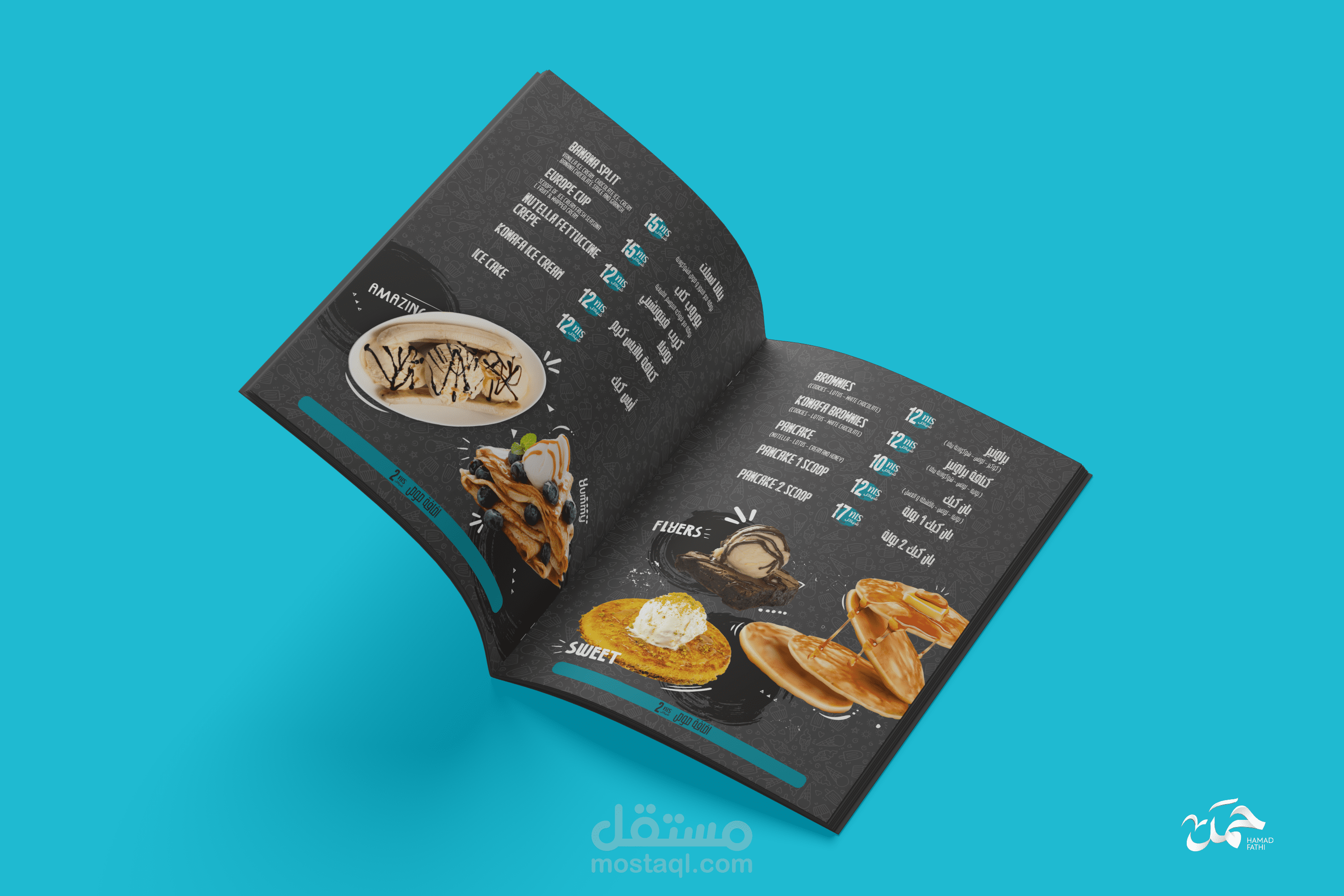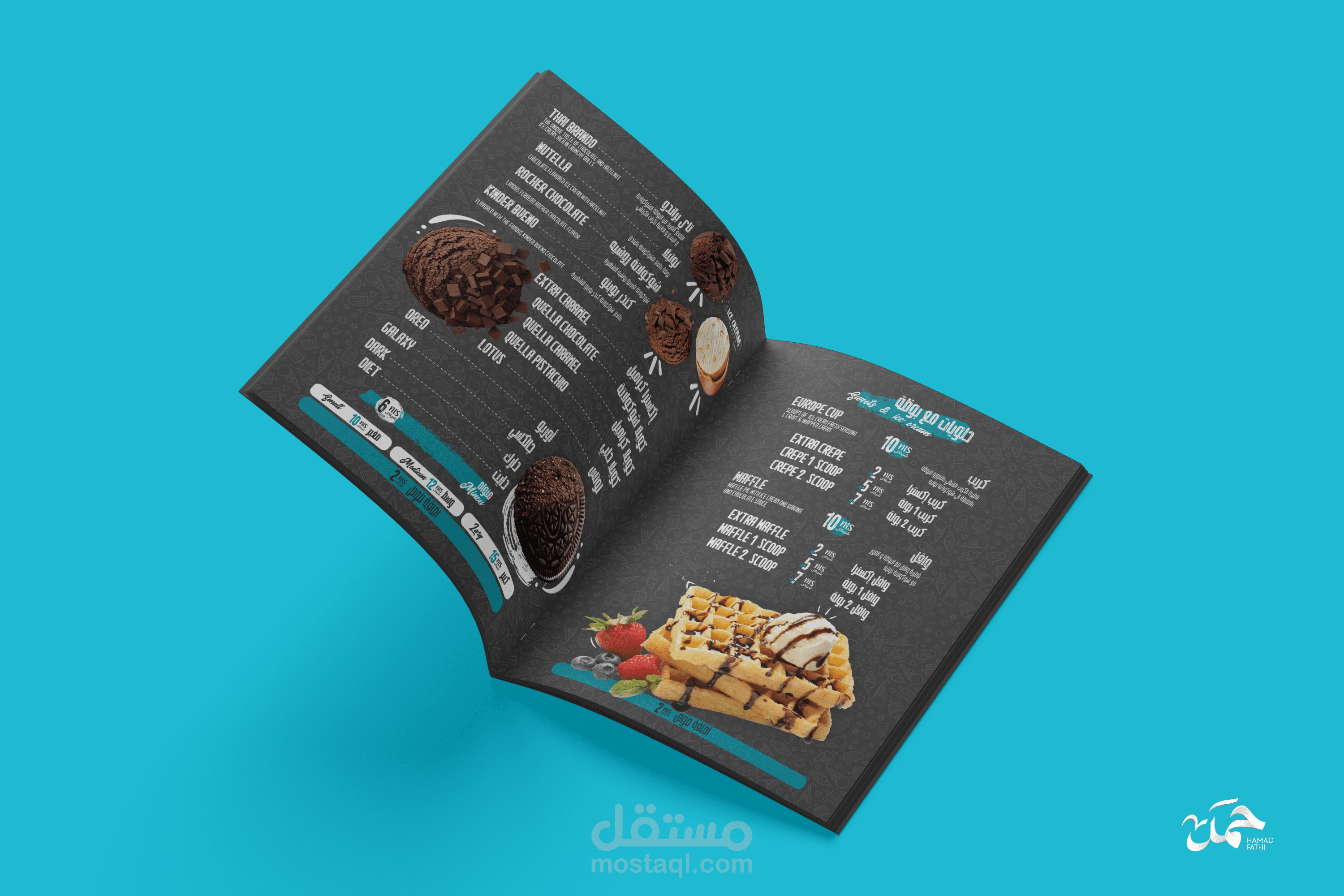تصميم منيو ابداعي لمطعم حلويات وايسكريم