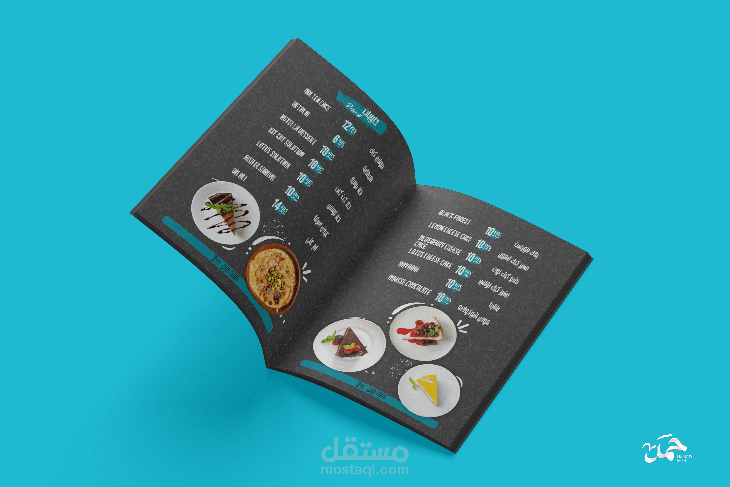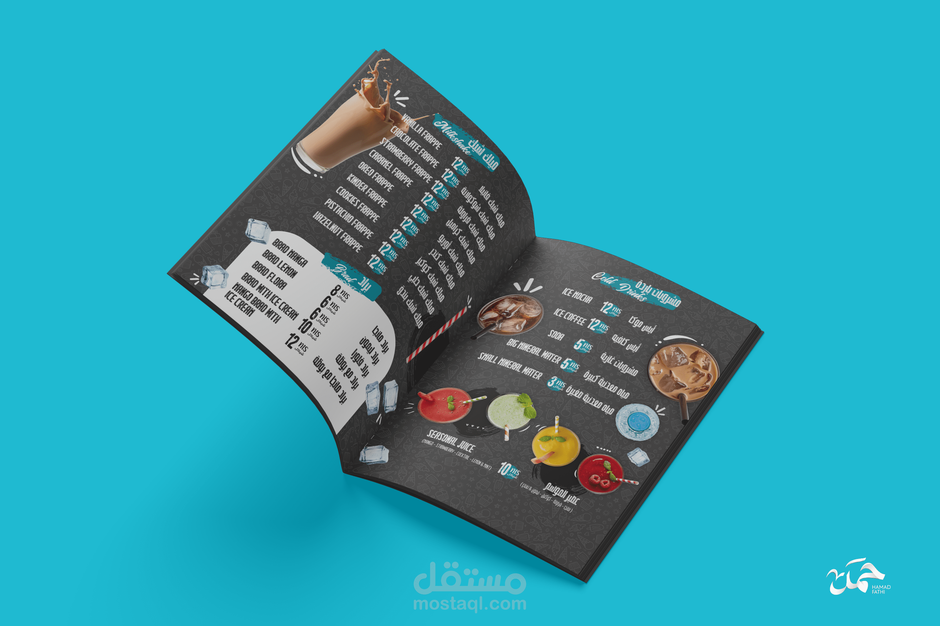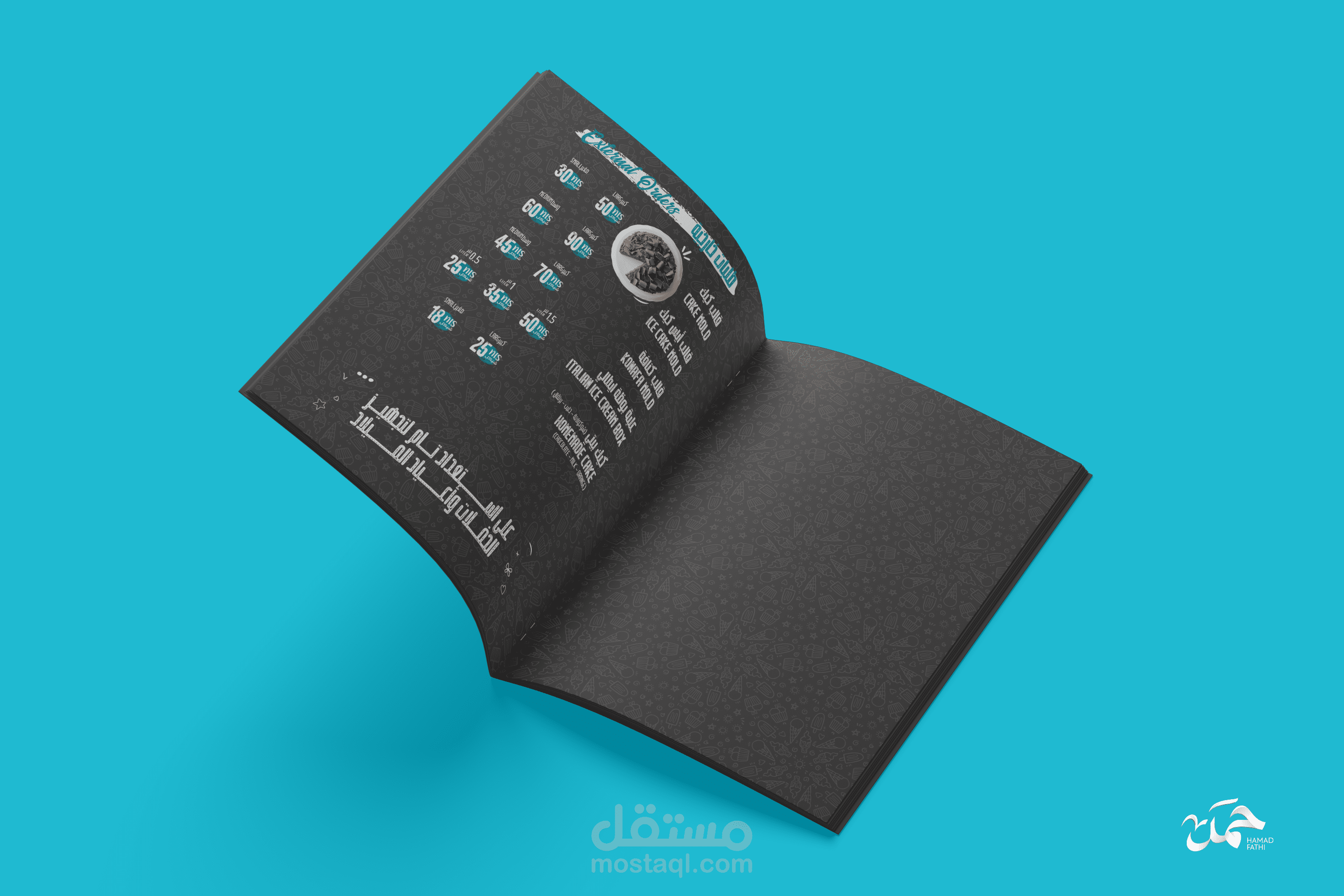 تصميم منيو ابداعي لمطعم حلويات وايسكريم