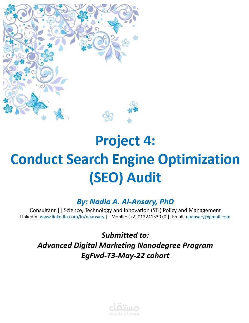 أحد المشروعات المقدمة لكورس التسويق الرقمي (المستوى المتقدم) - Udacity .. تم فيه تدقيق للسيو (SEO)