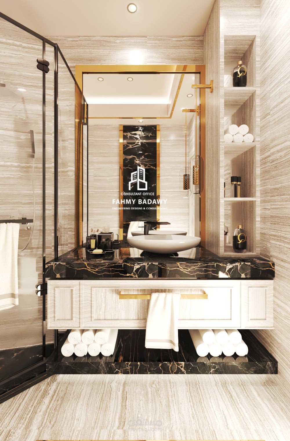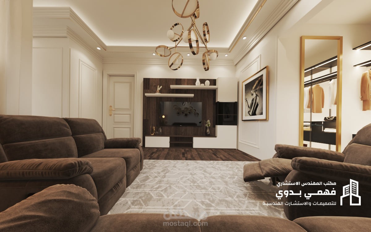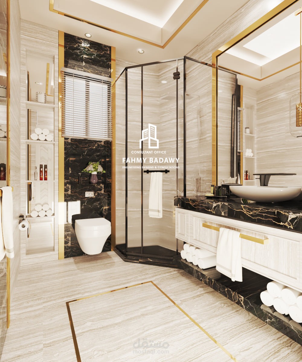 تصميم داخلى لغرفة نوم رئيسية مع الحمام