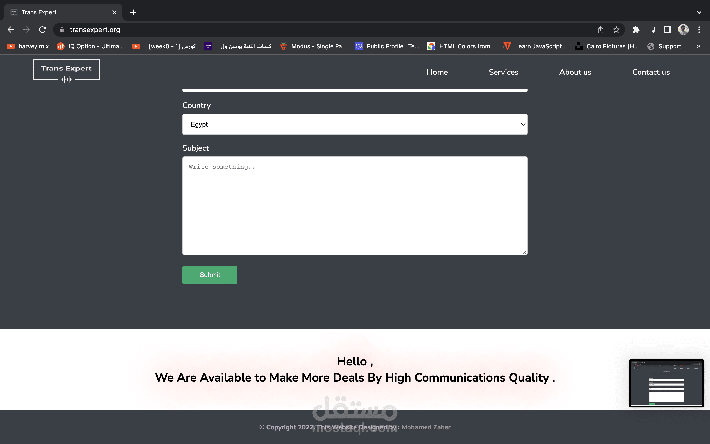 Working on this project allowed me to showcase my expertise in web development and design. I am proud to have created a professional website for Trans Expert, and I am excited to have it as a part of my portfolio.