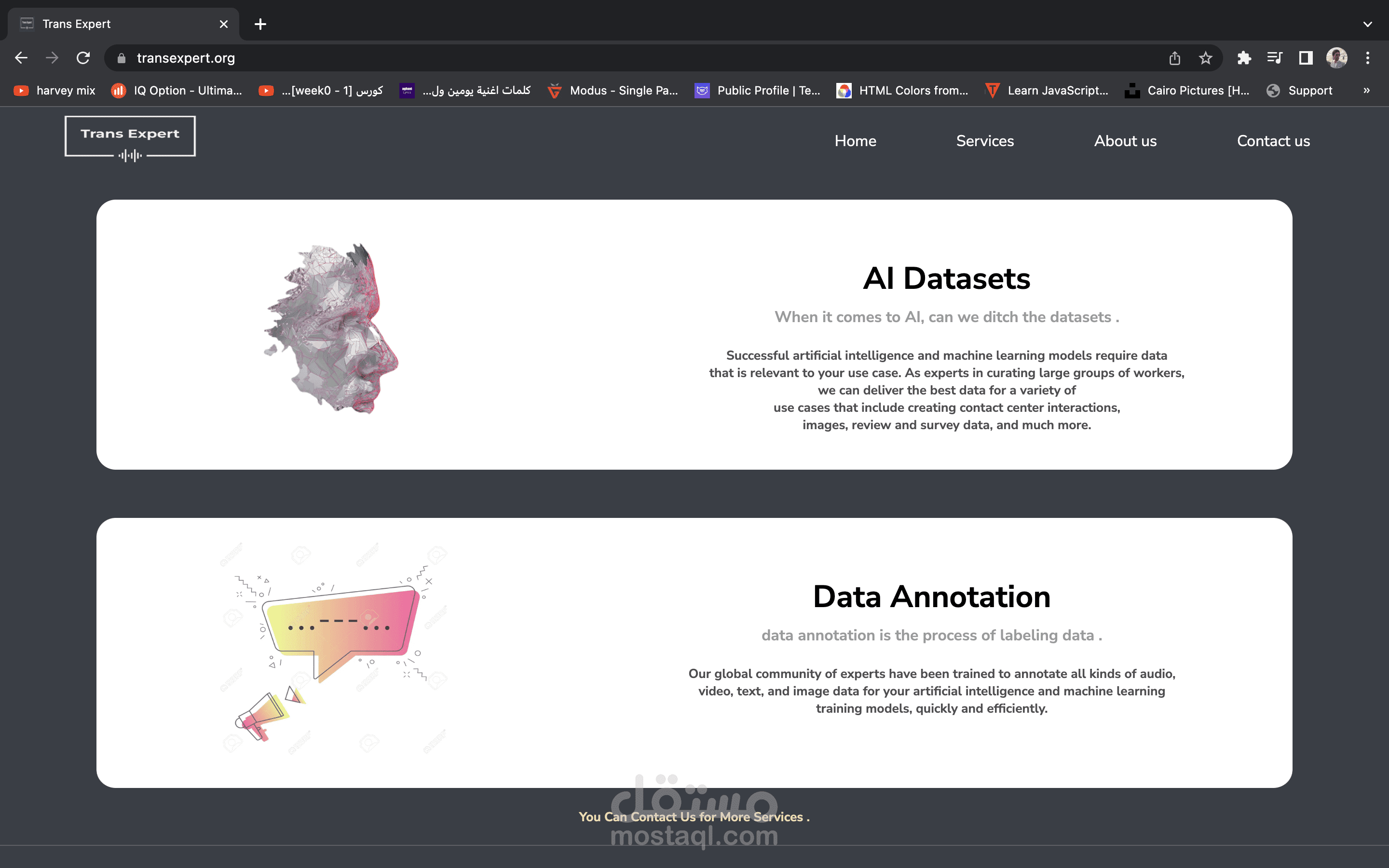 As a full-stack developer, I have designed and developed a professional website for Trans Expert, a leading company that offers transcription, translation, speech recognition, AI datasets, and data annotation services.