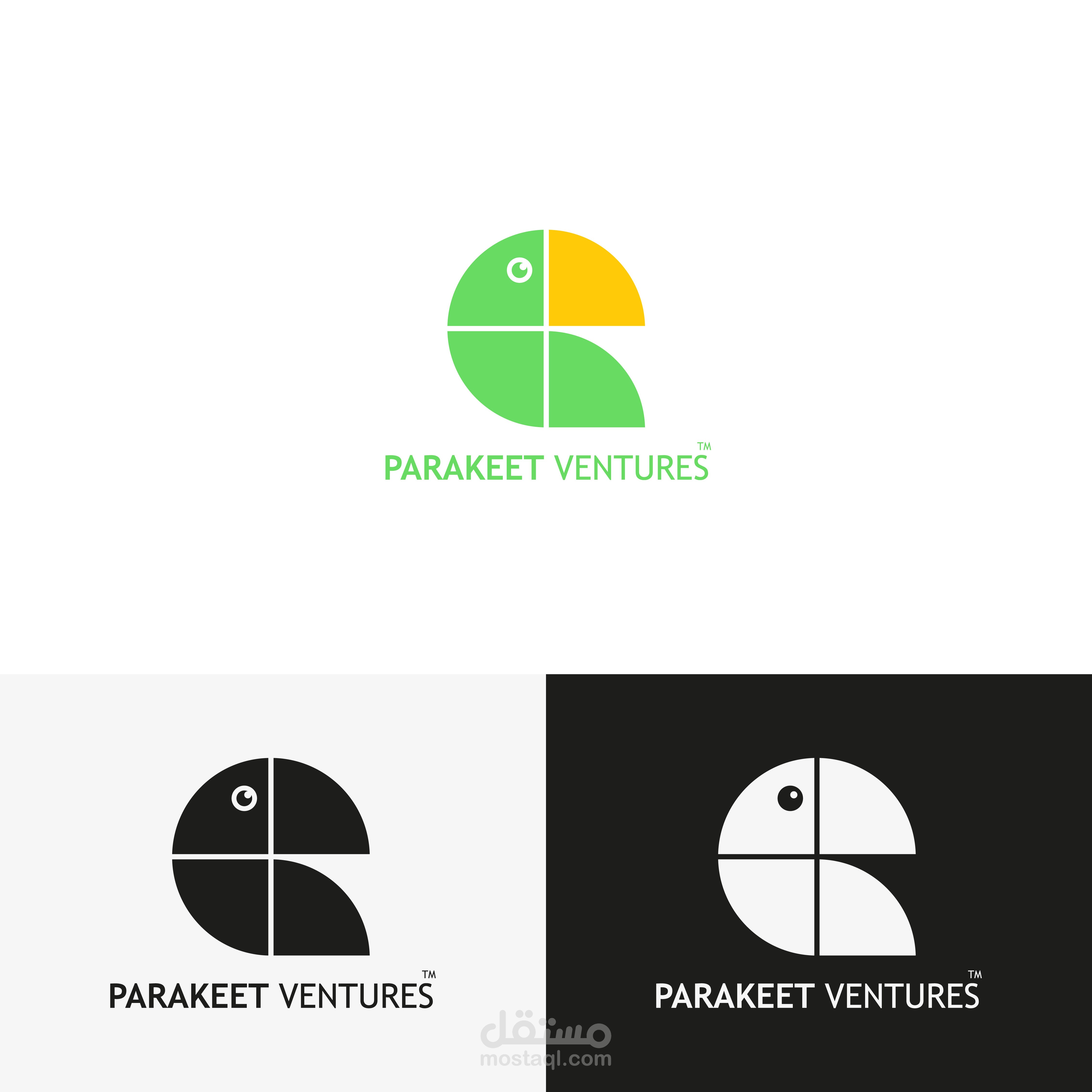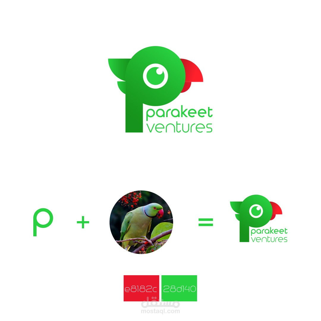 parakeet vantures هي شركة قيد الإنشاء تعمل في مجال التصميمات الداخلية تم عمل اللوجو علي هذا الأساسوهو إبراز الرسم الهندسي للطائر المرغوب إتخاذه كرمز للشركة عن طريق إبراز شكل الرسمالتخطيطي تارة ودمج حرف الp من parakeet مع الطائر بشكل هندسي .. ولكن أختار العميلفي النهاية الرسم الحر للطائر المشهور بريشه الأخضر ومنقارة الأحمر مع كتابة أسم الشركةبخط زخرفي