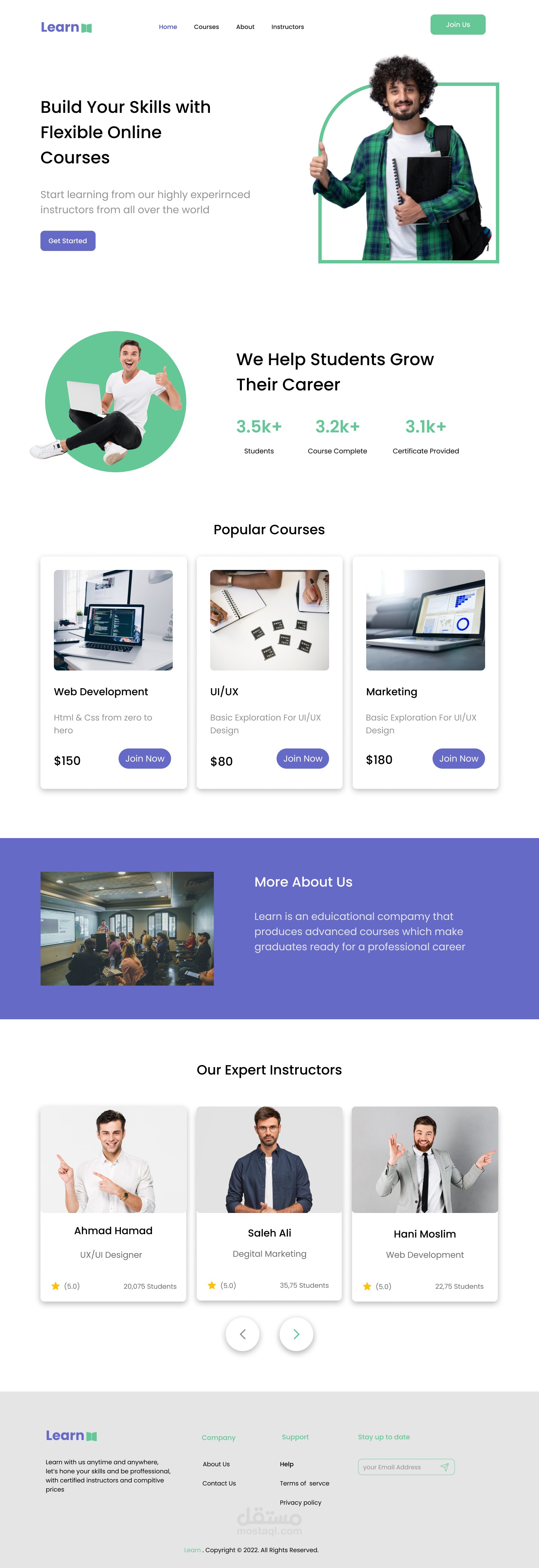 تصميم صفحة هبوط لمؤسسة تعليمية باستخدام figma بواجهات عصرية تعرض الخدمات بطريقة جذابة وتوجه المستخدم إلى الاشتراك فيها
