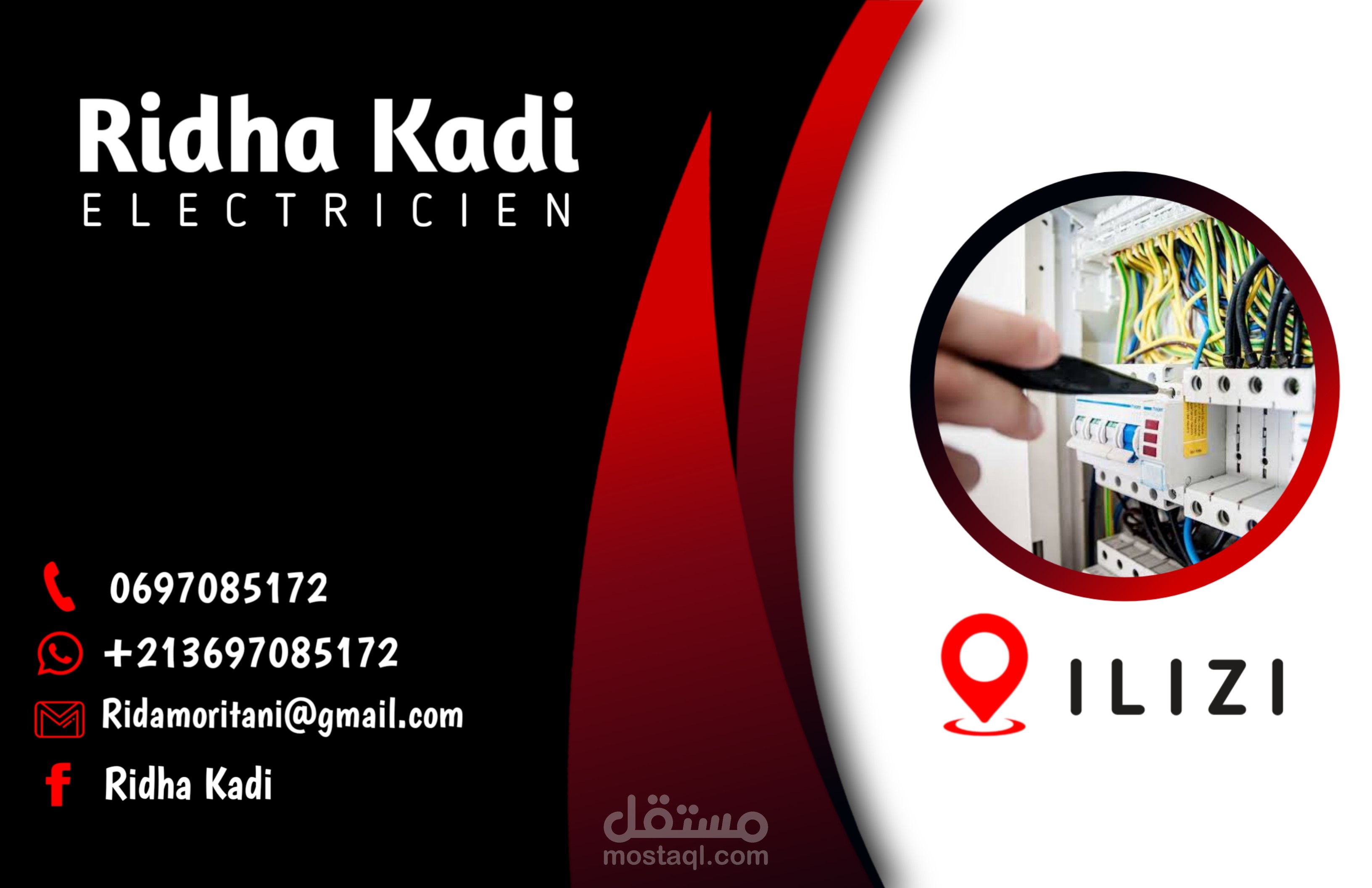 ثانيا قمت لاختبار اللونين الاحمر والأسود لتناسقهما وقدرتهما على لفت الانتباه لدى العميل وكذلك يمثلان الوان خيوط الكهرباء (اسود واحمر).