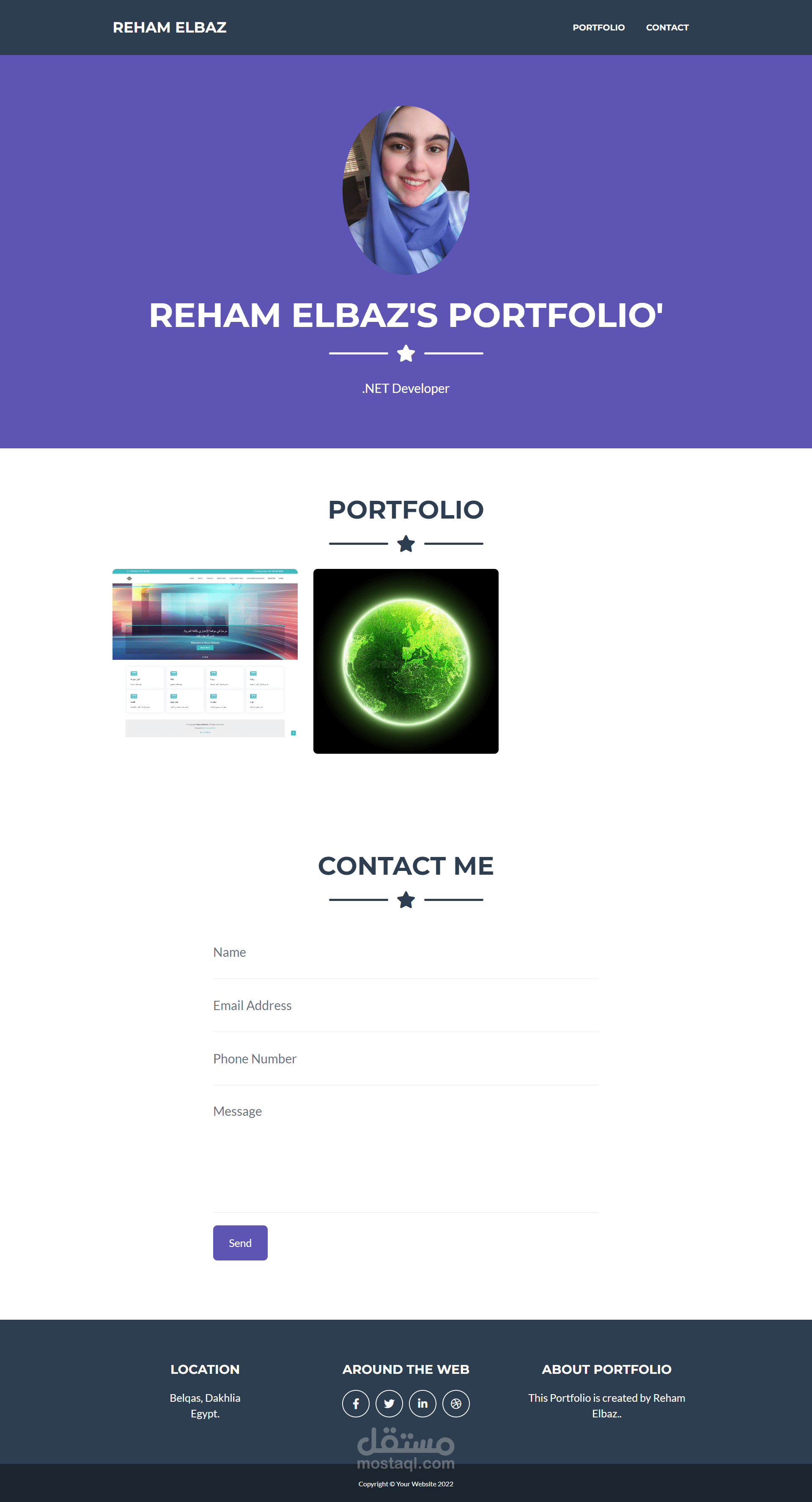 تطبيق ويب باستخدام تقنية asp .net core MVC يقوم بعرض المشاريع الخاصة بشخص ما في تصميم بسيط ومريح للعين. عند النقر على صورة المشروع، تظهر نافذة تحتوي على عنوان وصورة ووصف للمشروع. يمكنك الاطلاع على الكود كاملًا من خلال الرابط التالي.