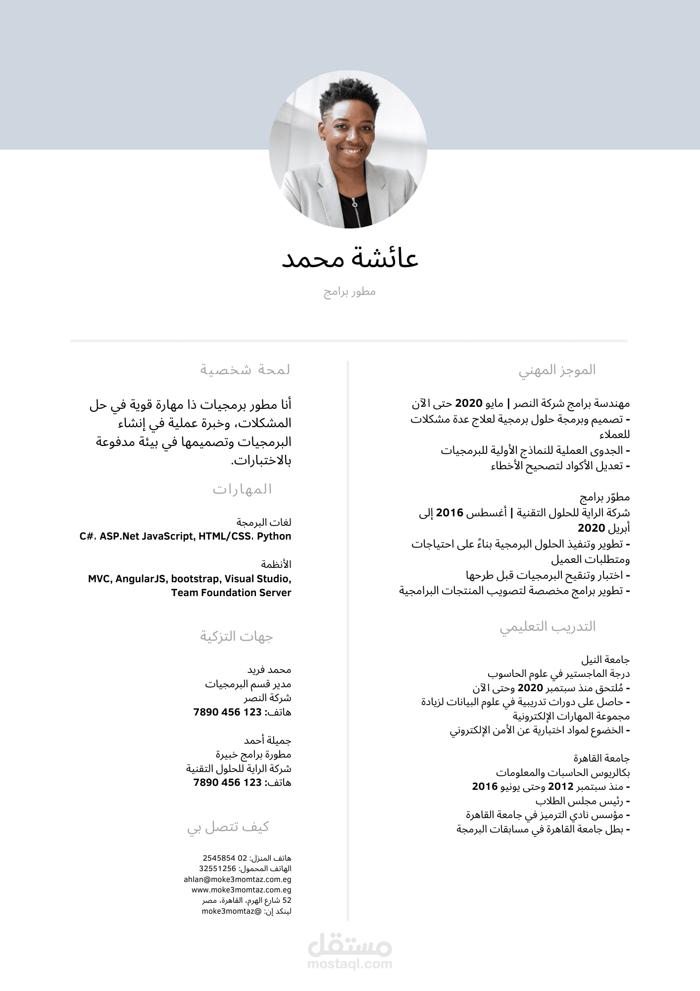 سيرة ذاتية لمهندسة برمجيات