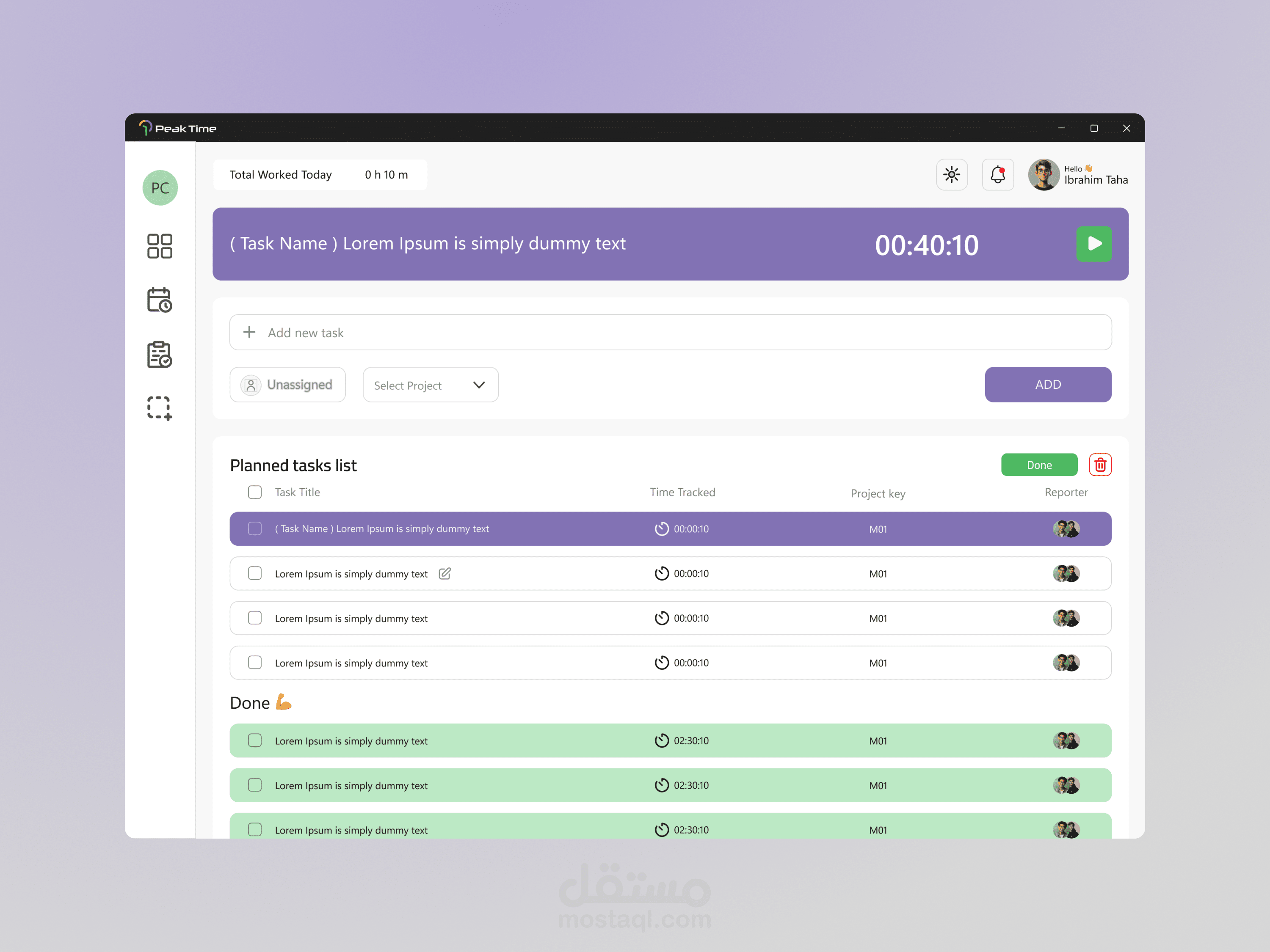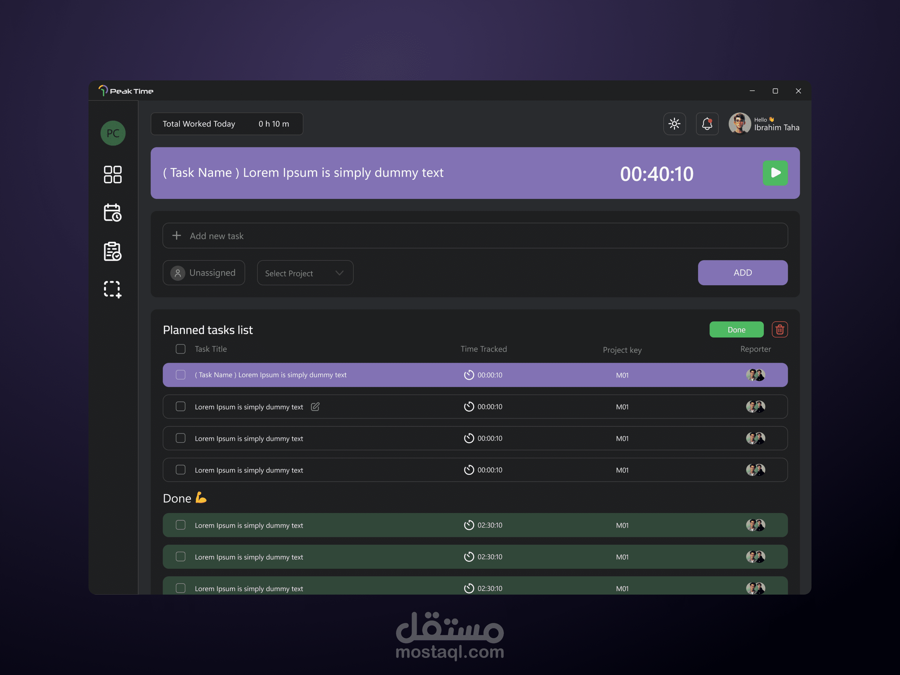 PeakTime – Desktop View for Time Management App