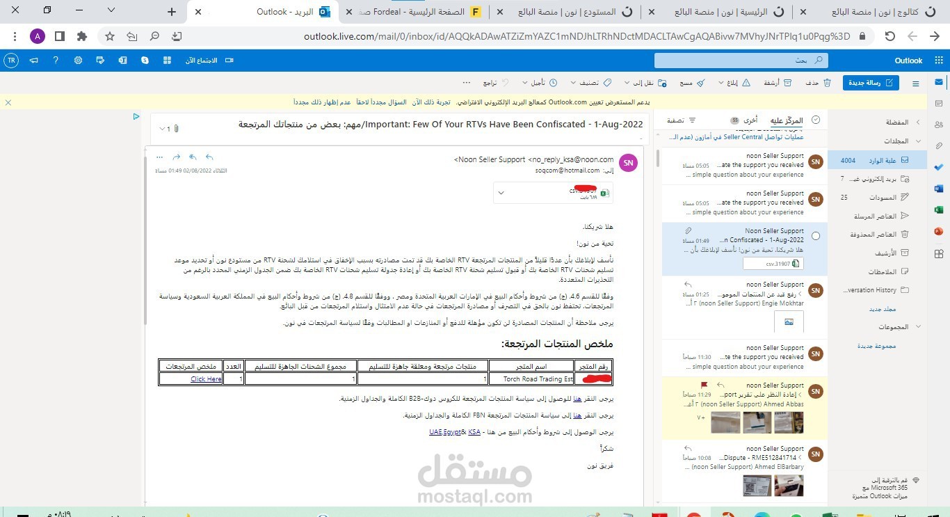 20 - الردود على الايميل: مرتجع - ضمان - ضياع أو تلف - فك قيد - سحب الغير قابل للبيع.