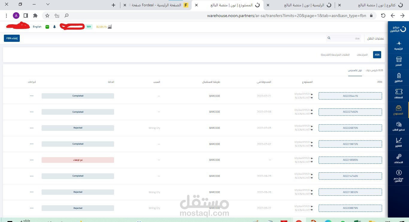 19 - توصيل المنتجات الي مستودع نون واستلام المرتجعات.