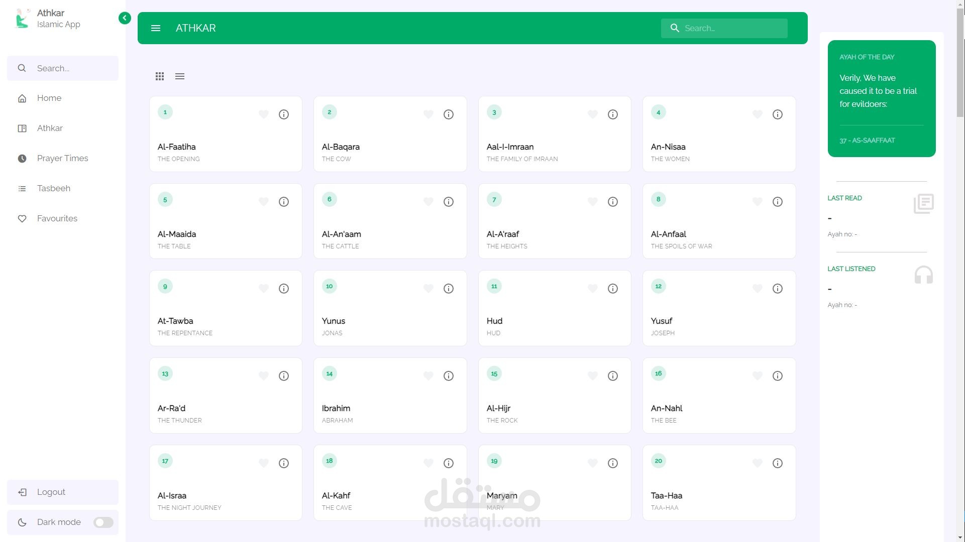 General Information about all surahs in the holy Quran.