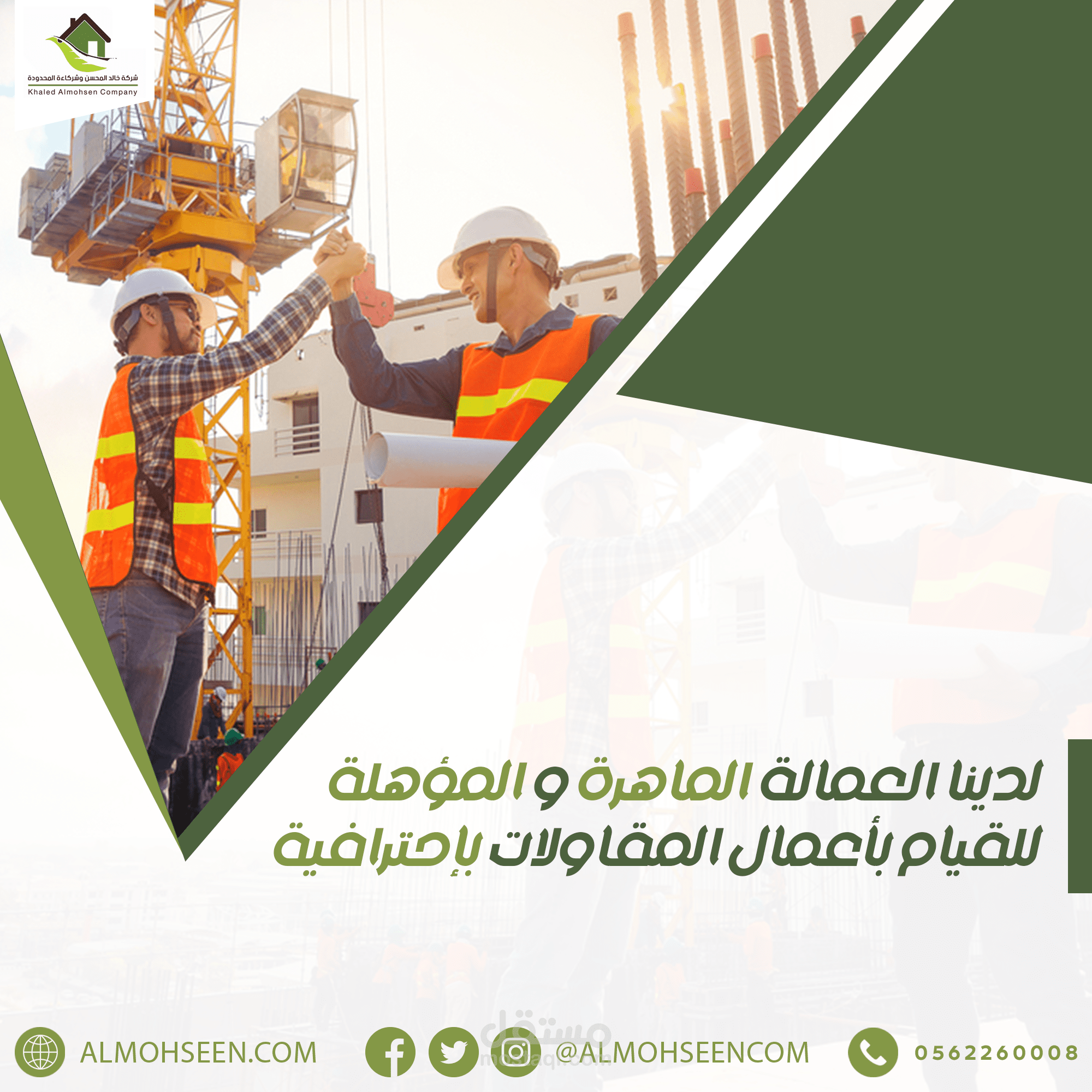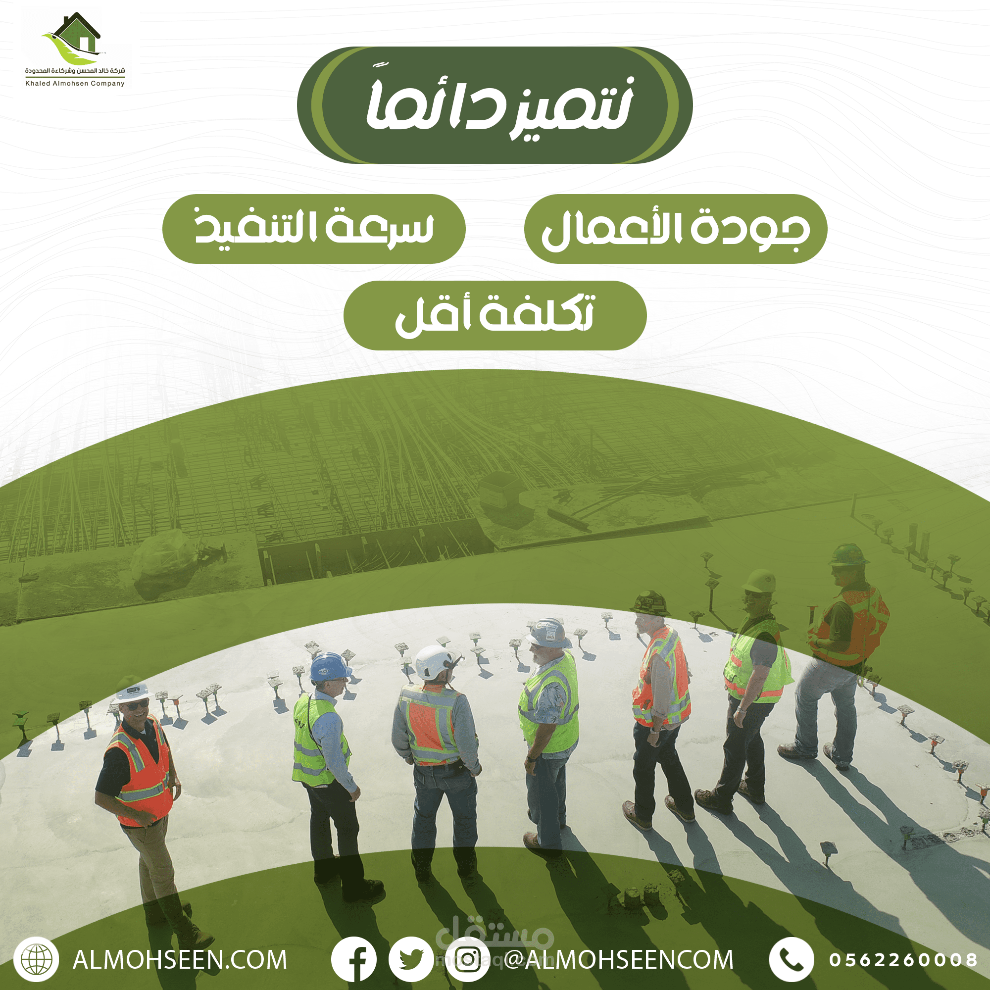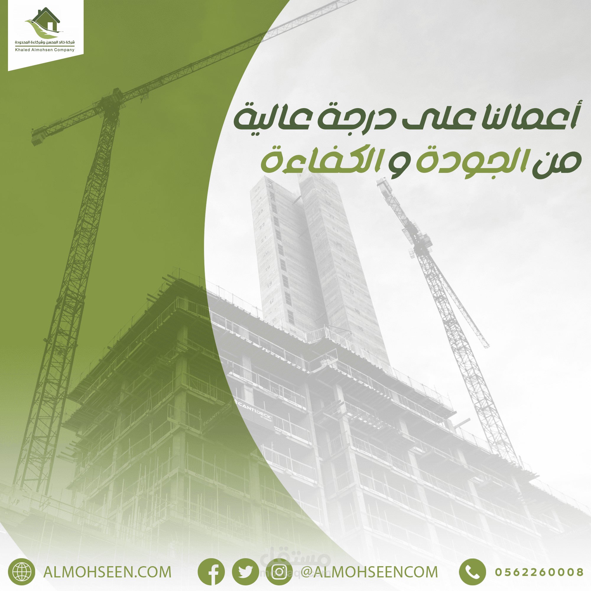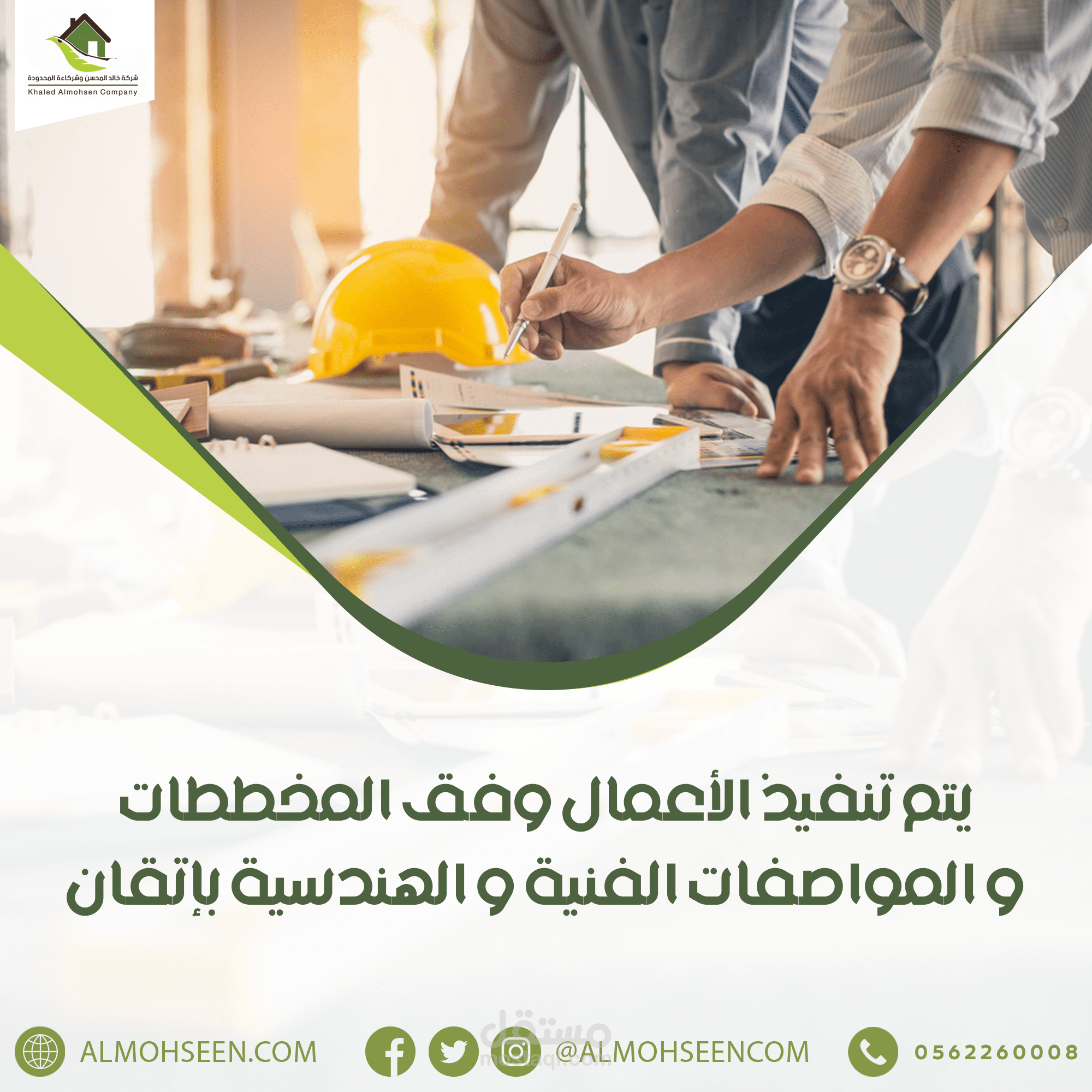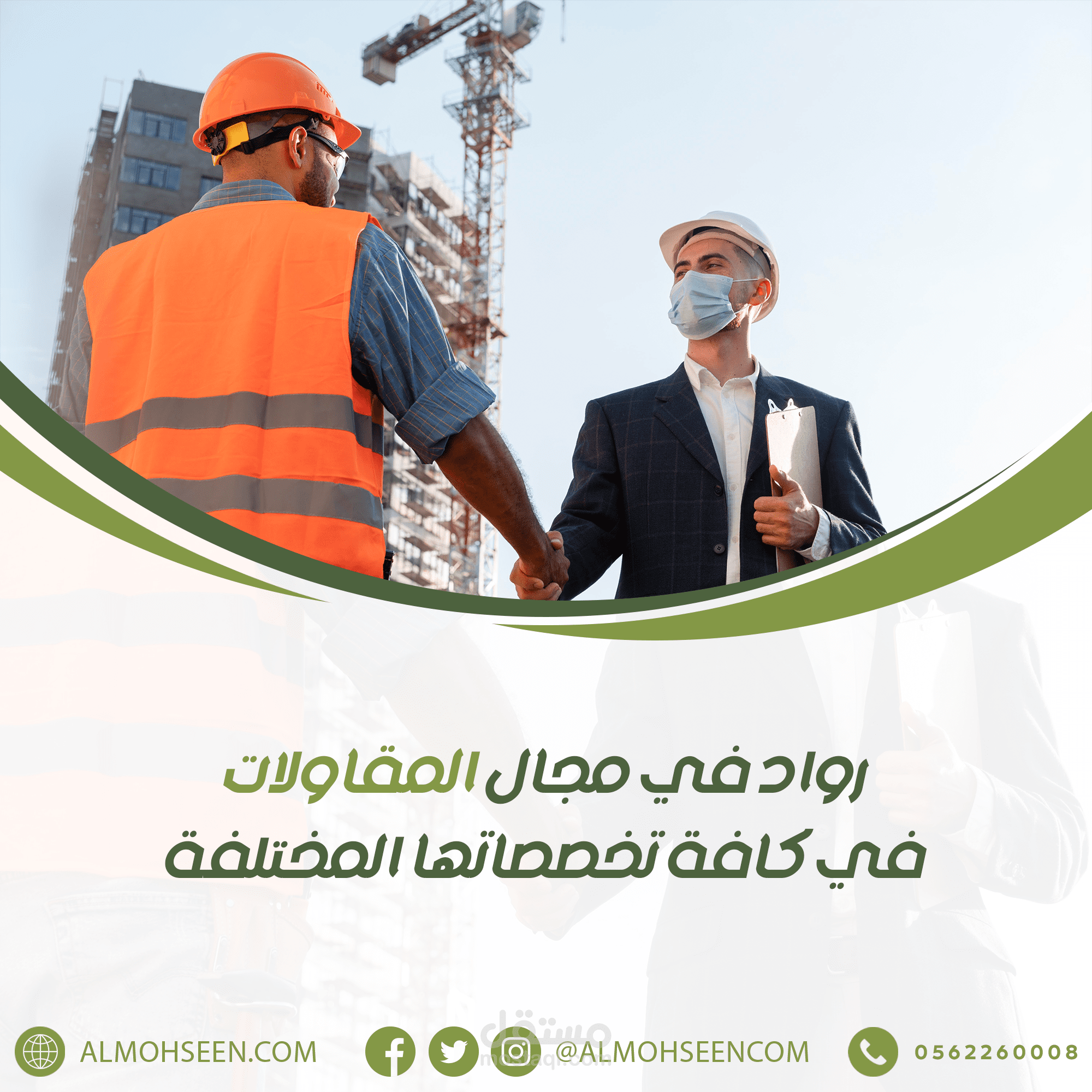 هذا العمل عبارة عن مجموعة من تصاميم السوشيال ميديا لبوستات انستقرام لشركة المحسن للإنشاءات و العقارات للتعريف و الترويج لما تقوم به الشركة من خدمات