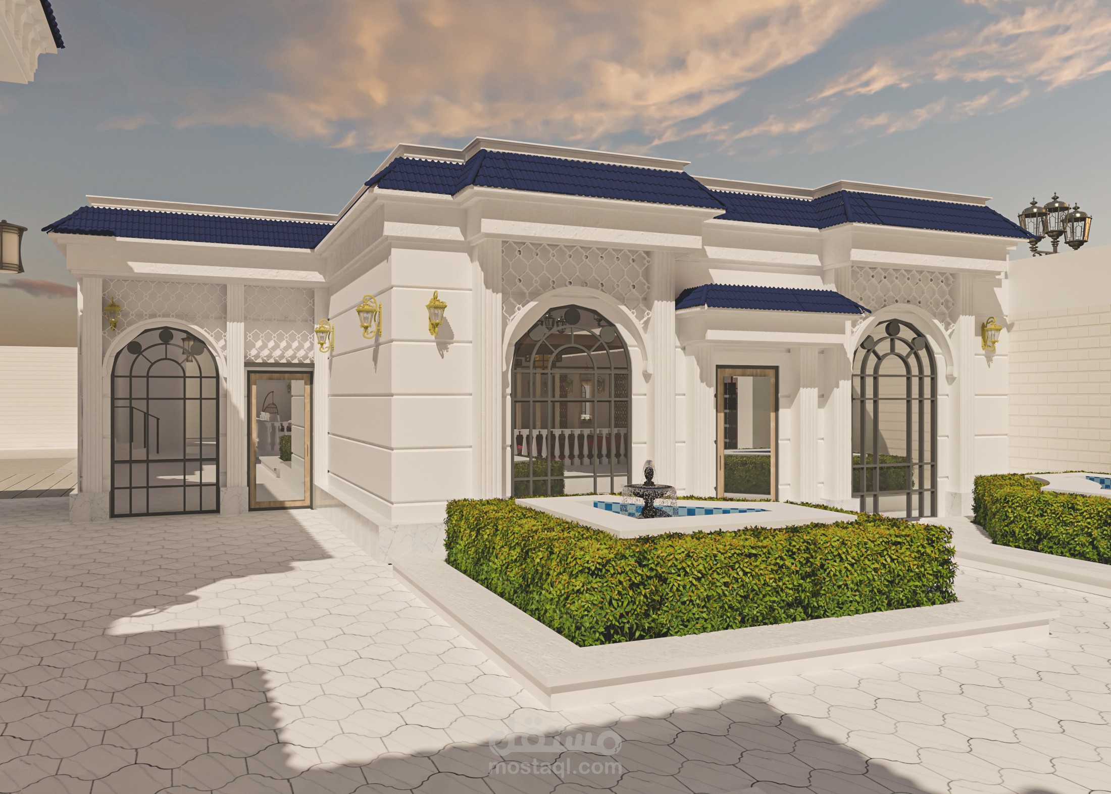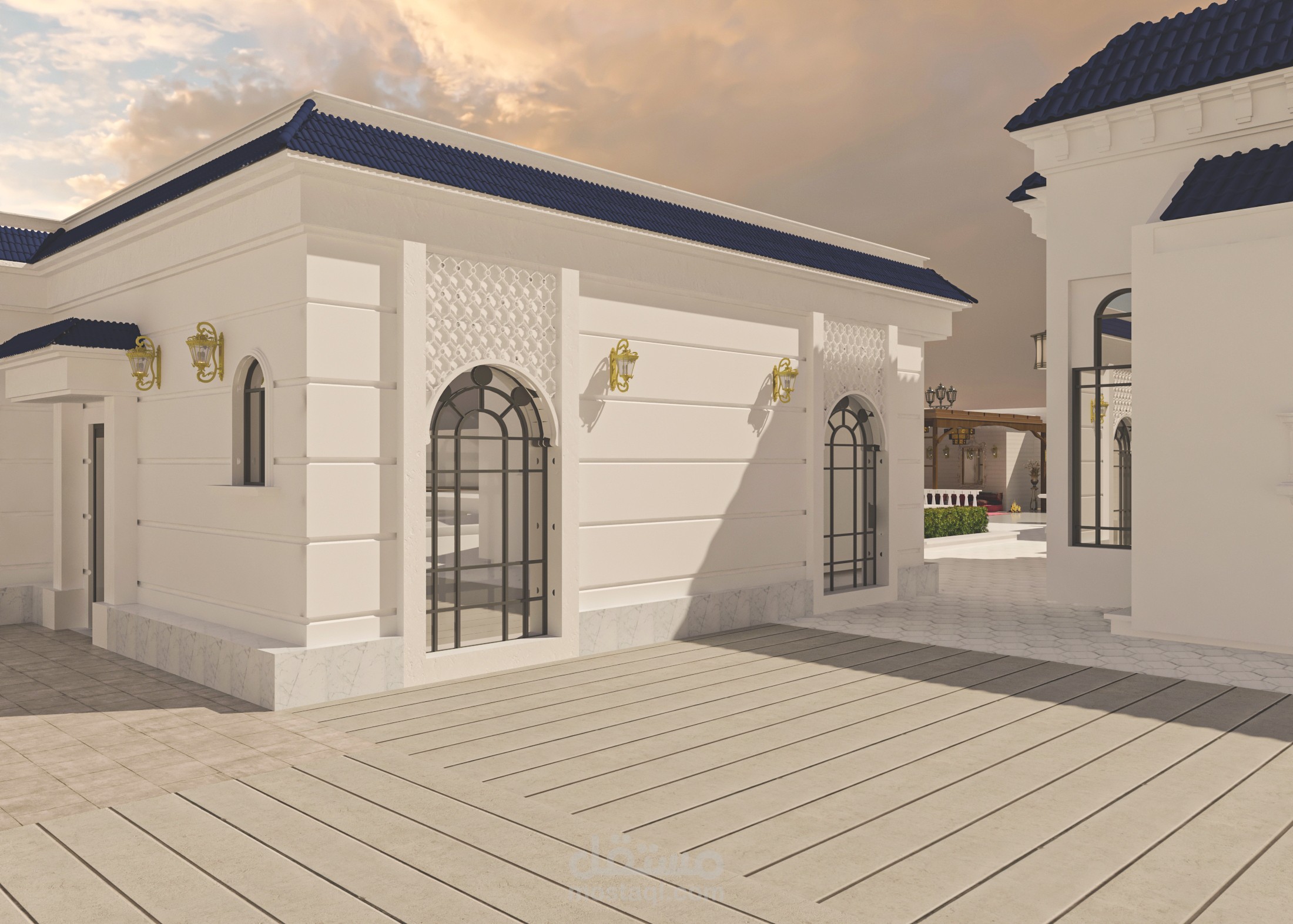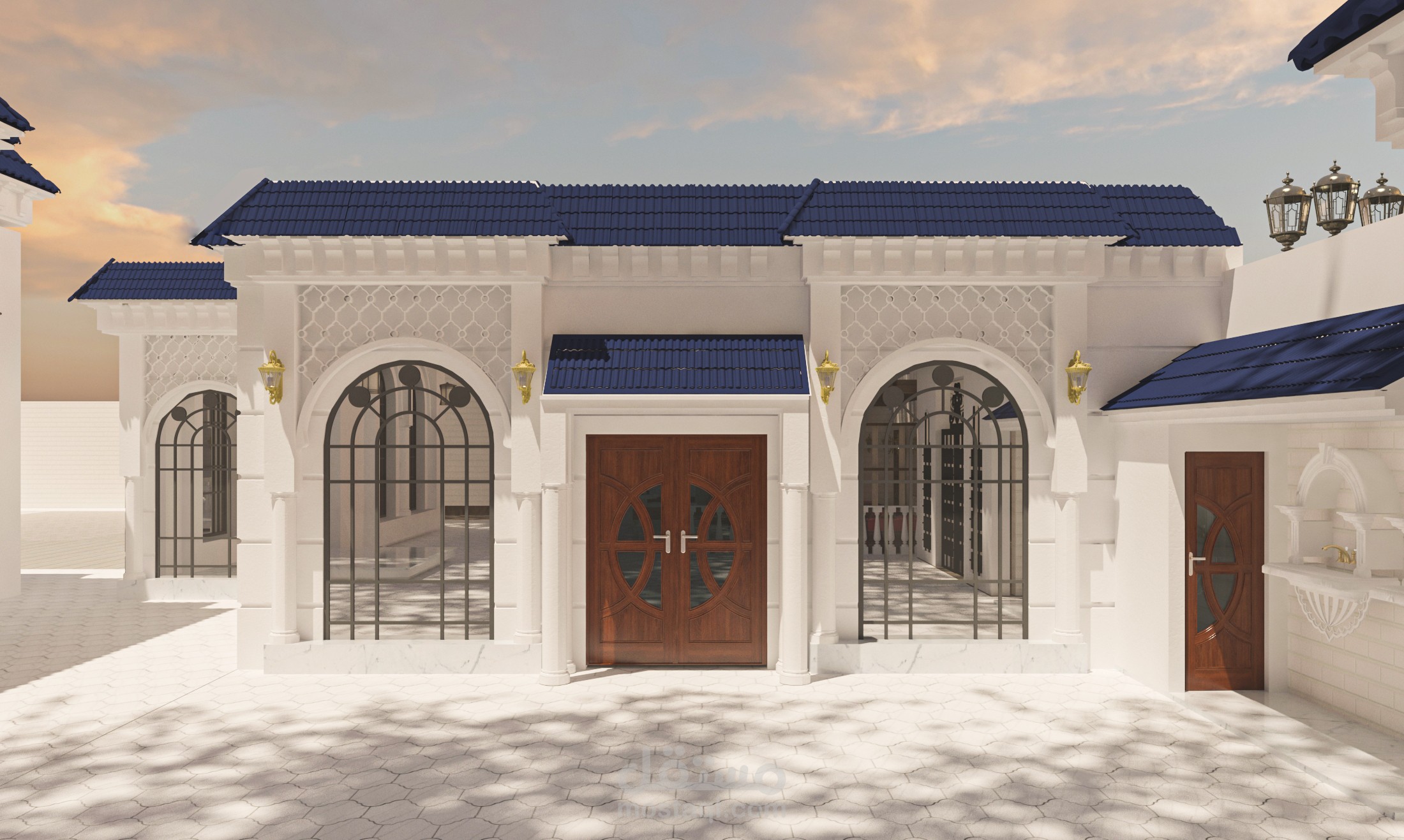 MEN'S MAJLIS SUPPLEMENT FACADE CLASSIC DESIGN WITH SIMPLE DECORATIONS AND REFLECTIVE GLASS
