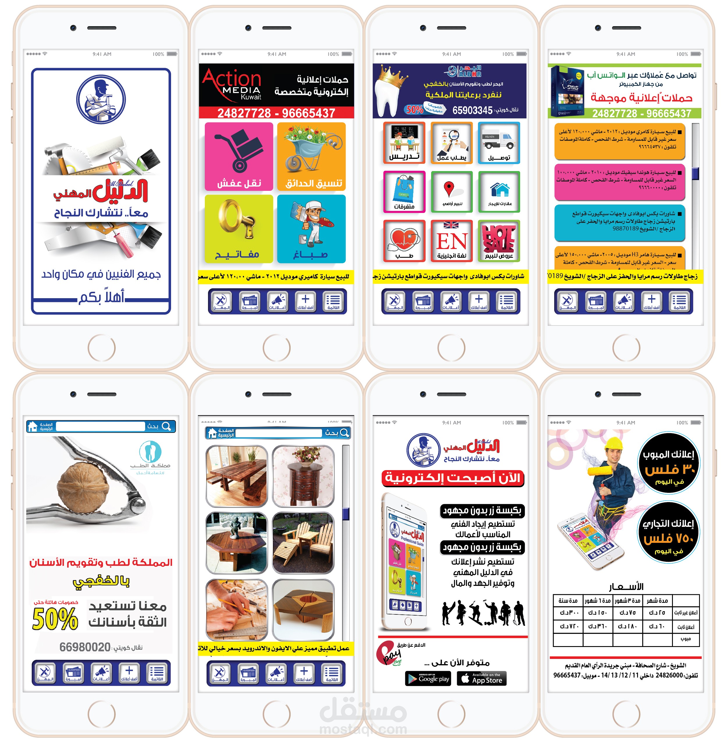 بعض التصاميم لابليشن موبيل مع جميع الصفحات المرفقة و الخدمية - تم التصميم علي برنامج الاليستريتور و تجهيزة للفوتوشوب لبداية البرمجة و الرفع