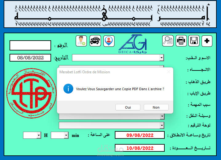 برنامج مصغر باستخدام مايكروسوفت اكسل يقوم بالملأ الاوتوماتيكي لأمر بمهمة من خلال قاعدة بيانات مدرجة مسبقا