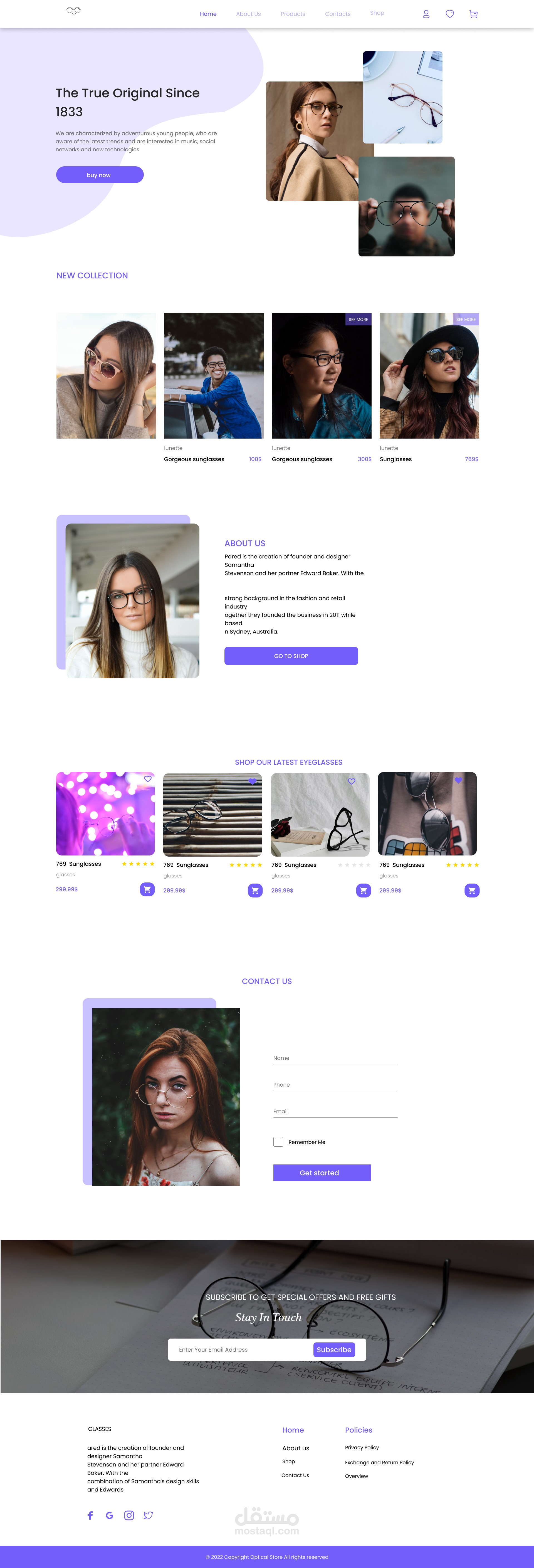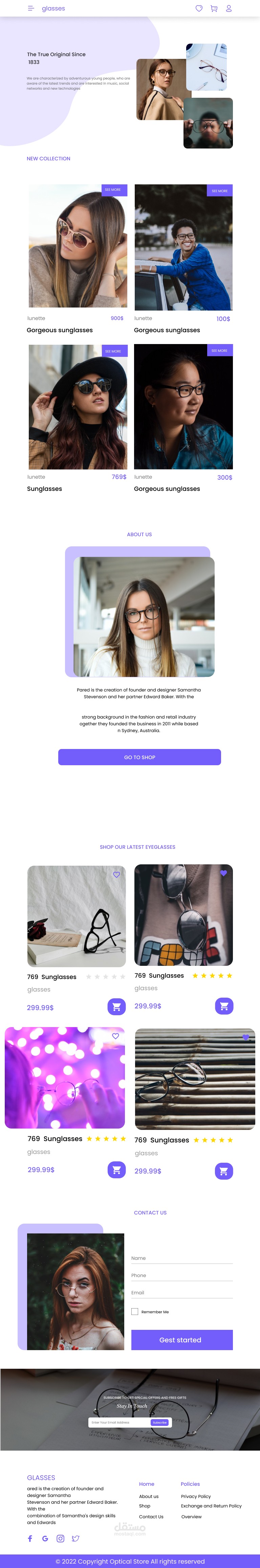 متجر ماركة نظارات للتجارة الإلكترونية موقع تجارة الكترونية مختص ببيع النظارات الشمسية يمتاز بسهولة الاستخدام وبساطة التصميم