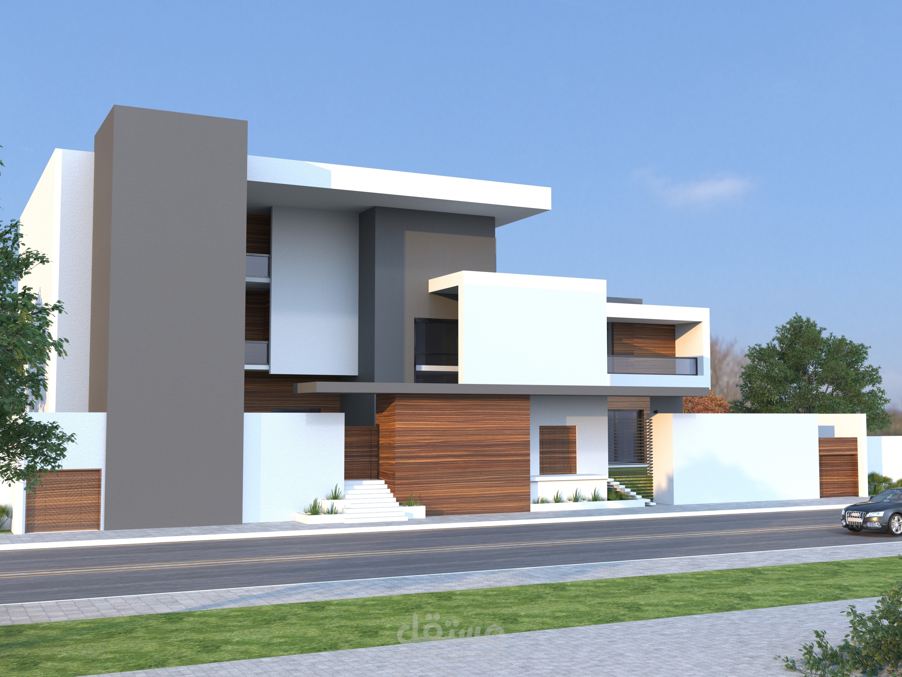 The villa was designed in modern style (surfaces & volumes) in combination of wood, dark and white color exterior cladding.