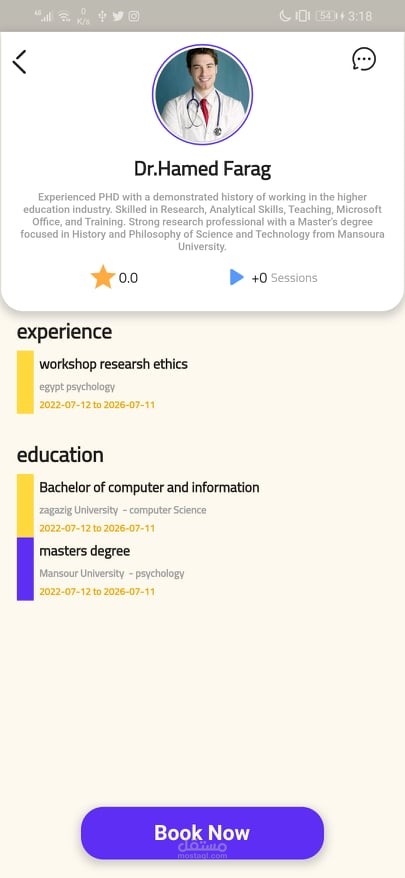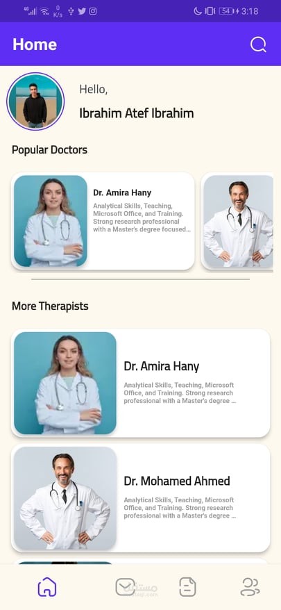 تطبيق للعياده النفسيه للتواصل بين الدكتور والمريض وحجز المواعيد