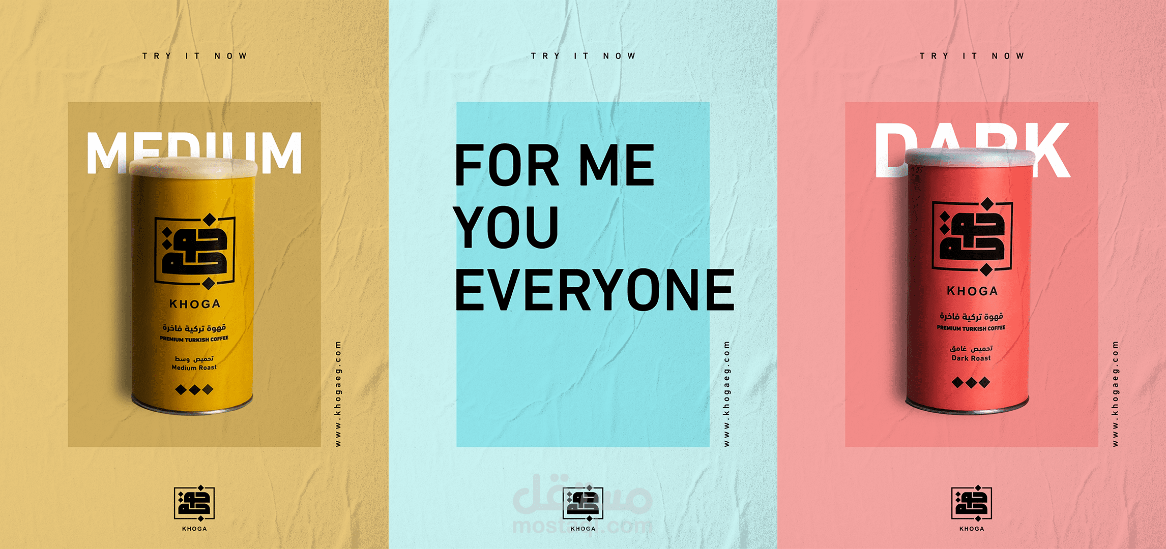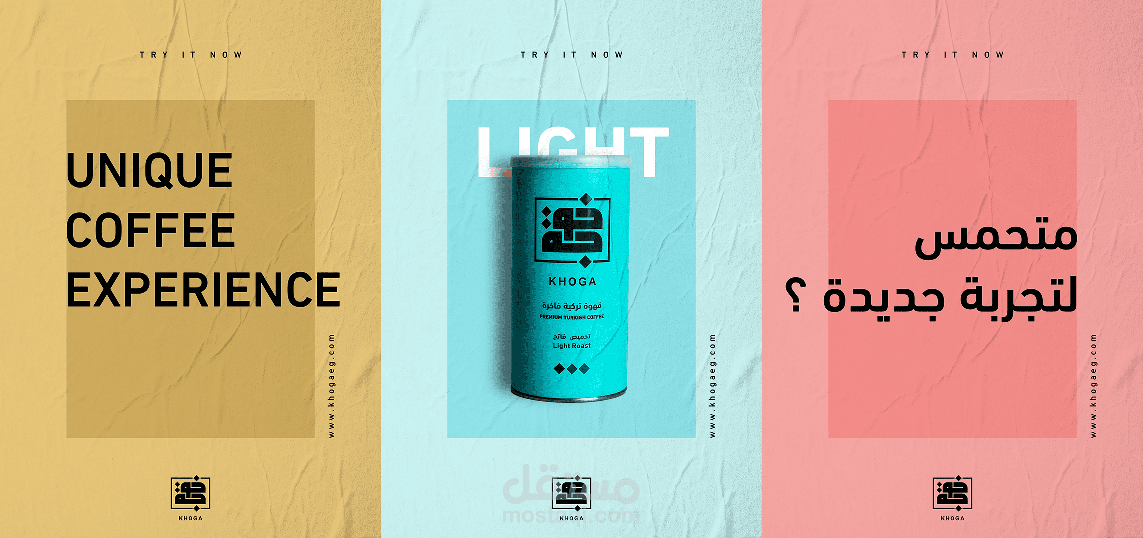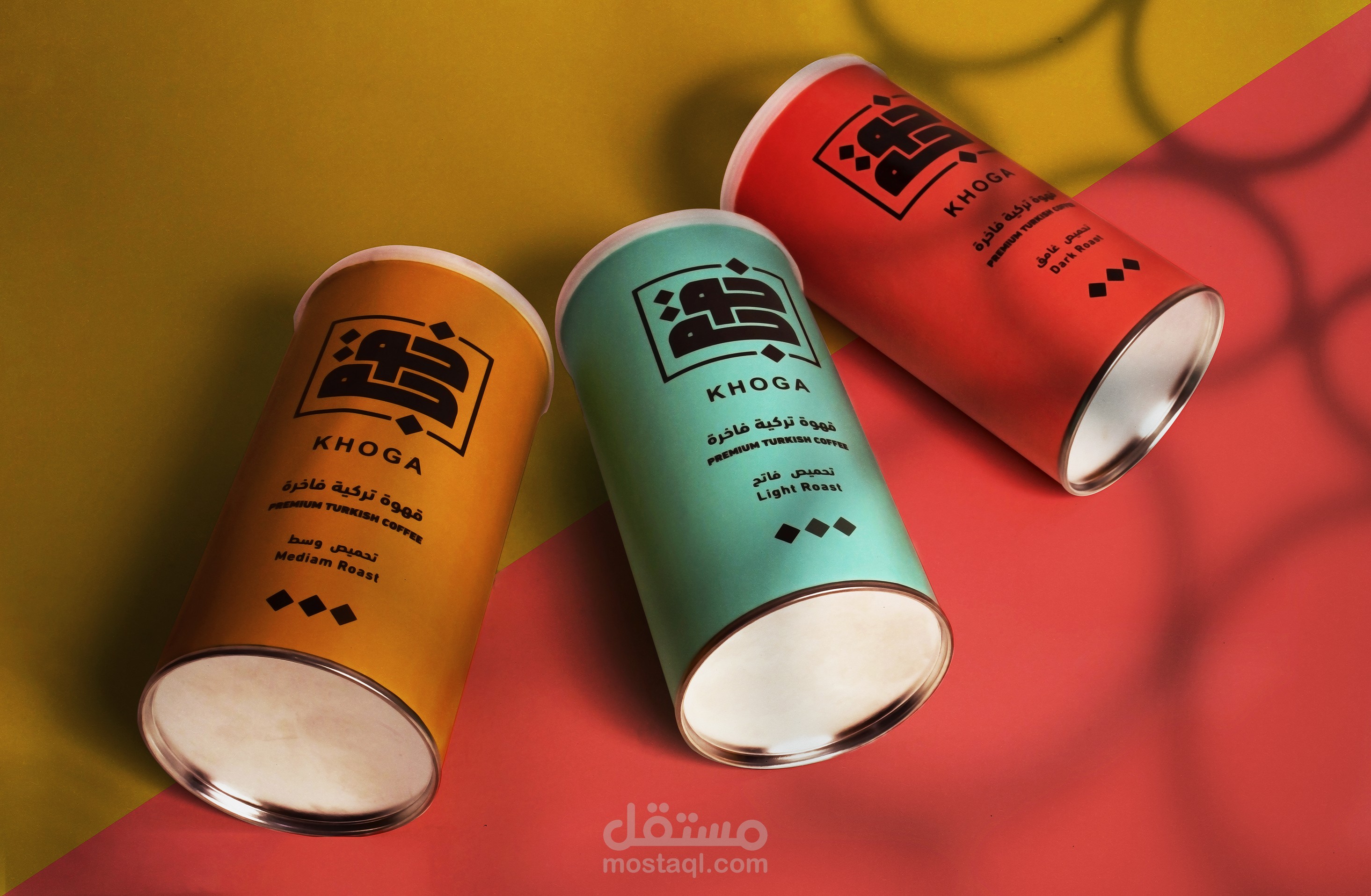 KHOGA is an Egyptian coffee product that launched in 2019 When work started on this project, we wanted to create a product that reflect modernity and creates a new culture in coffee products in Egypt that is compatible with the culture of current generations. The brand personality is reflect modernity - new experience We've worked to ensure that product colors represent certain characteristics and moods of our consumers, according to their preferred roast