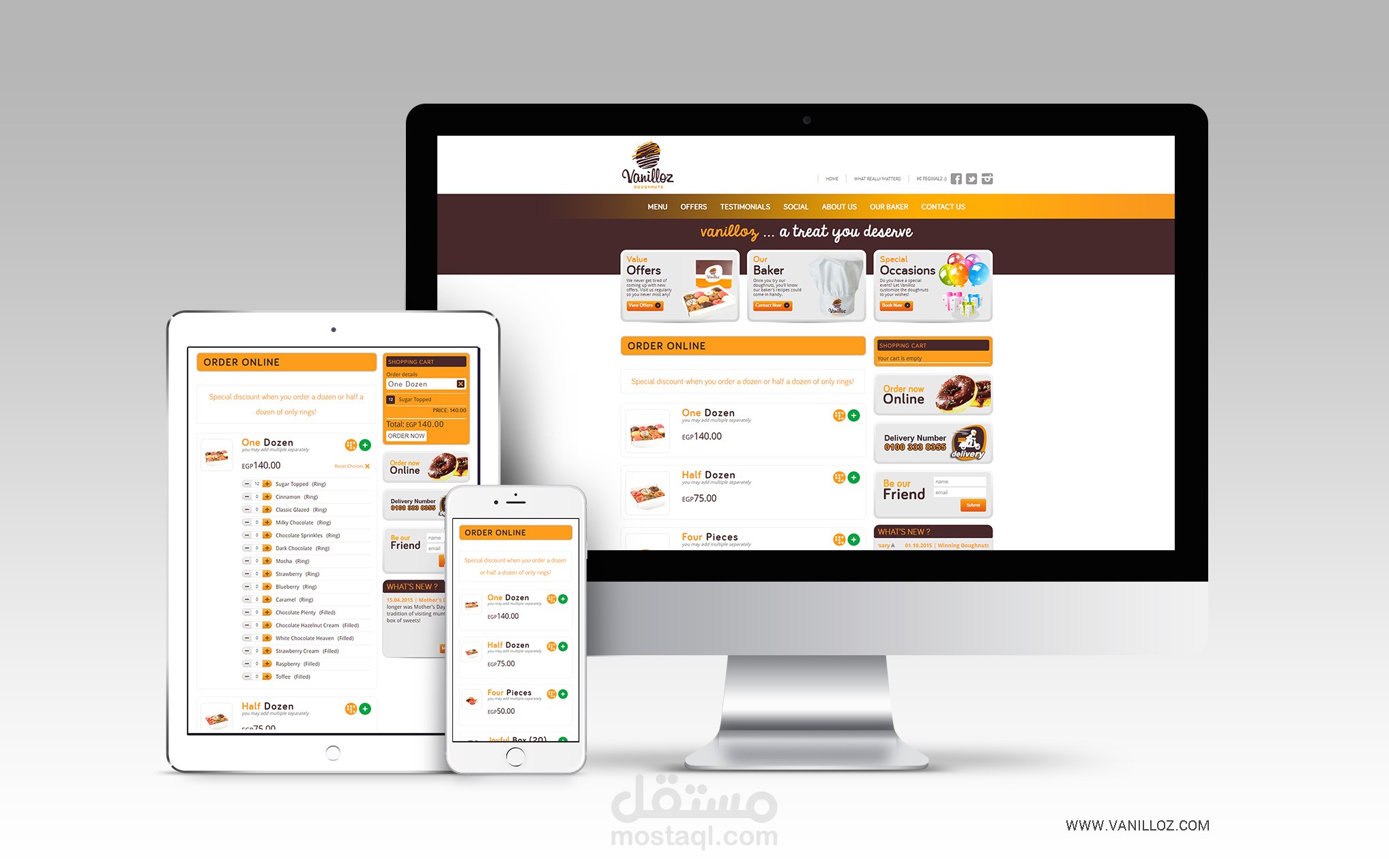 تصميم متفرد وتطوير شامل لموقع "Vanilloz Doughnuts" بالأضافة لتطبيقات العملاء والتسوق بشكل متجاوب مع جميع الاجهزة.