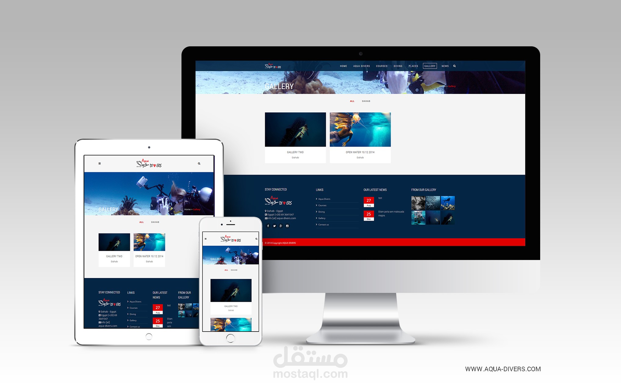 تطوير لموقع نادي AQUA بإعتماد جزئي على قالب جاهز وبشكل متجاوب مع جميع الاجهزة ومحركات البحث مع تطوير واجهة تحكم خاصة بأستخدام PHP و ووردبريس.