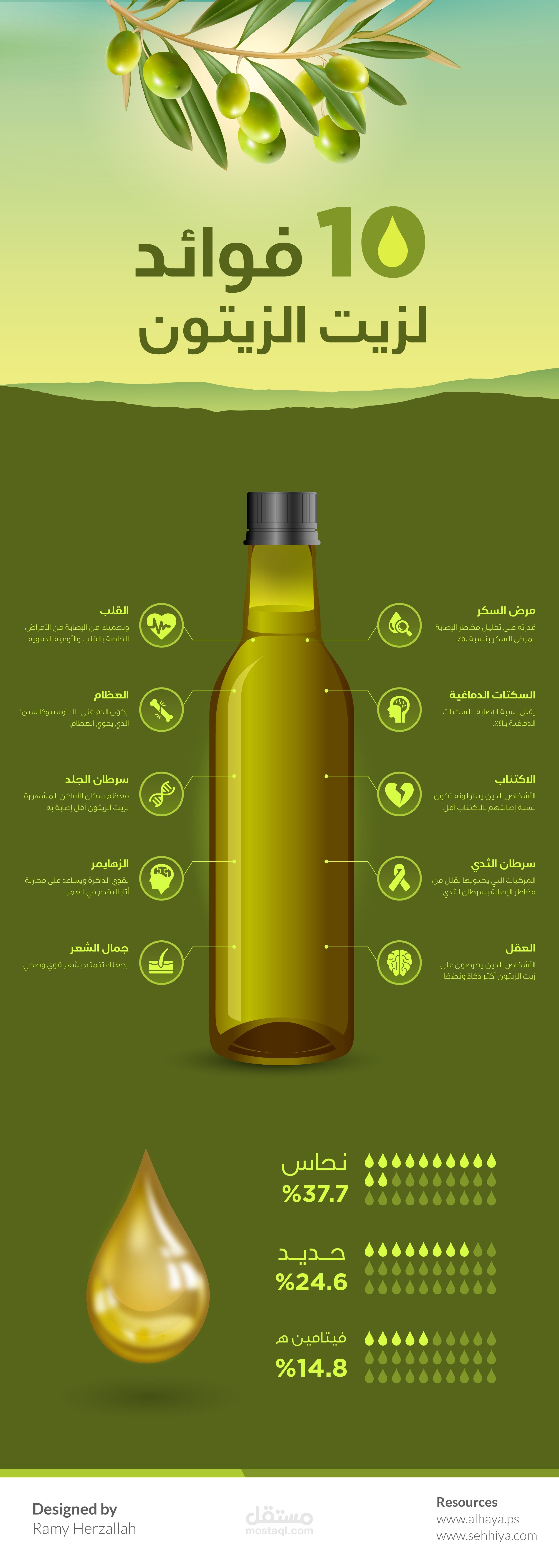 تصميم انفوجرافيك حول فوائد زيت الزيتون