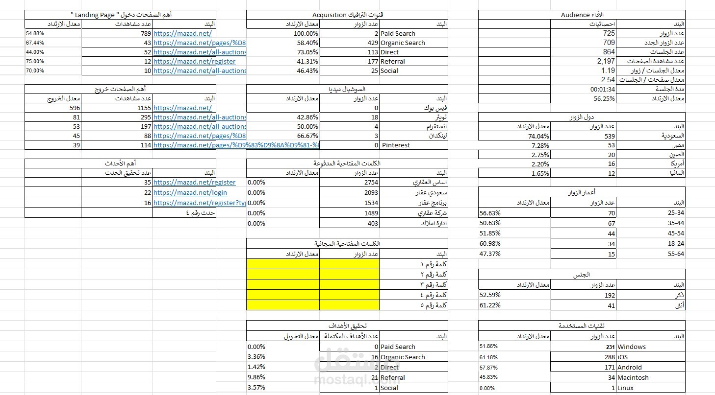 تقرير تحليلات جوجل Google Analytics لموقع الكتروني.