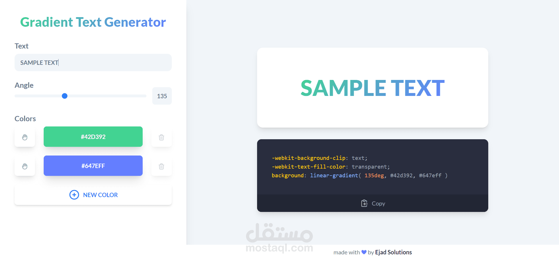 يسمح موقع css gradient text بتوليد الوان متدرجة على الخط باستخدام