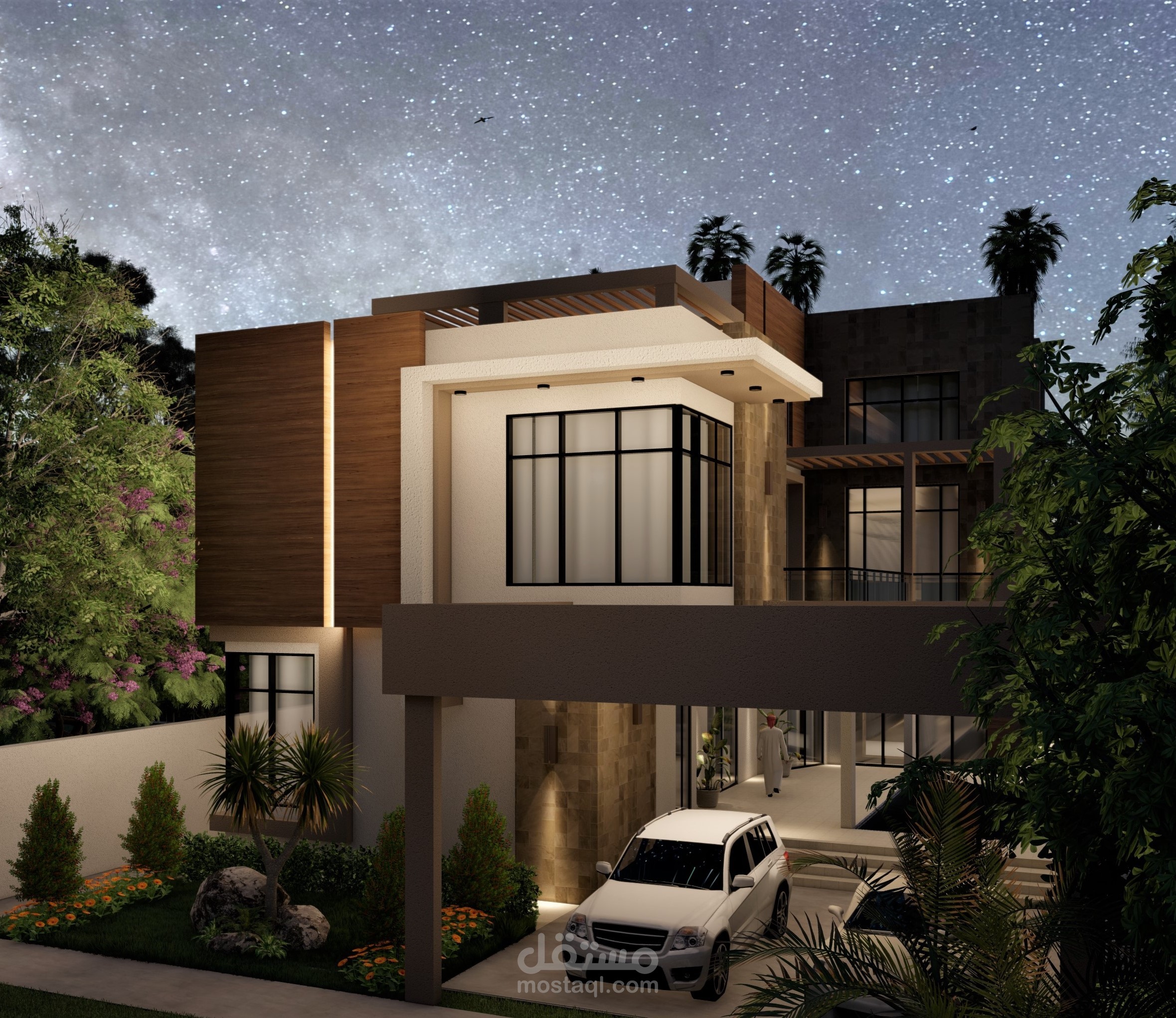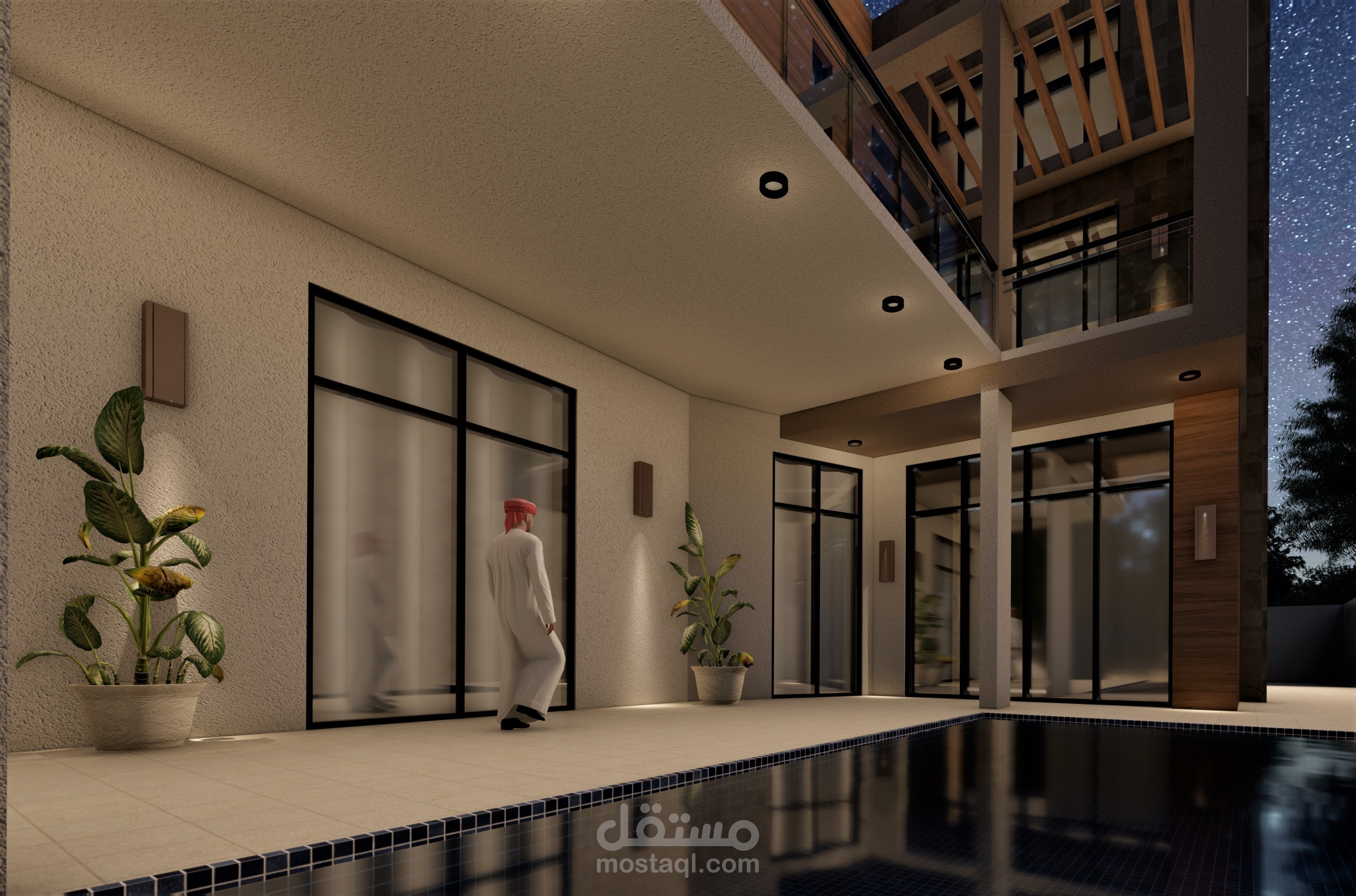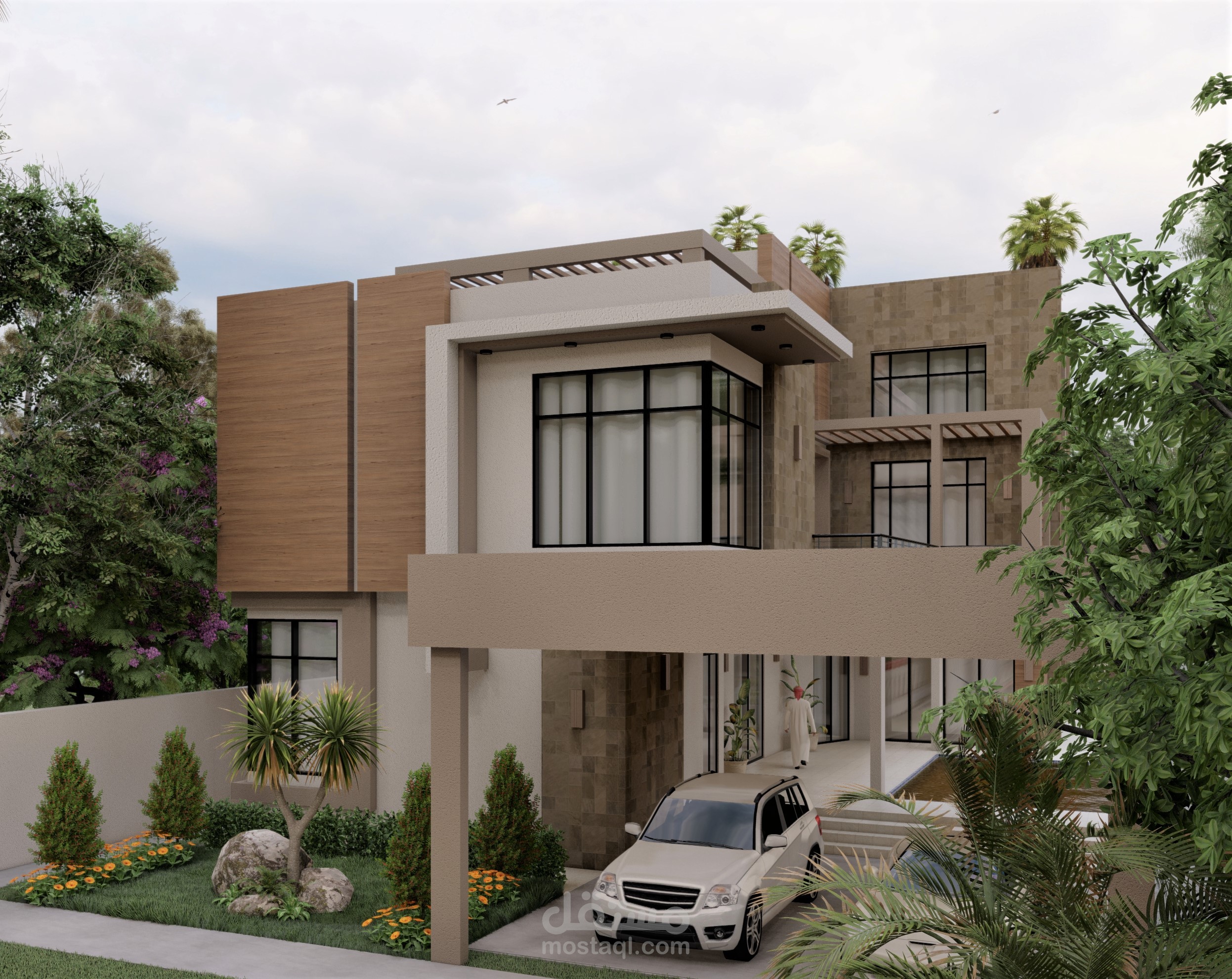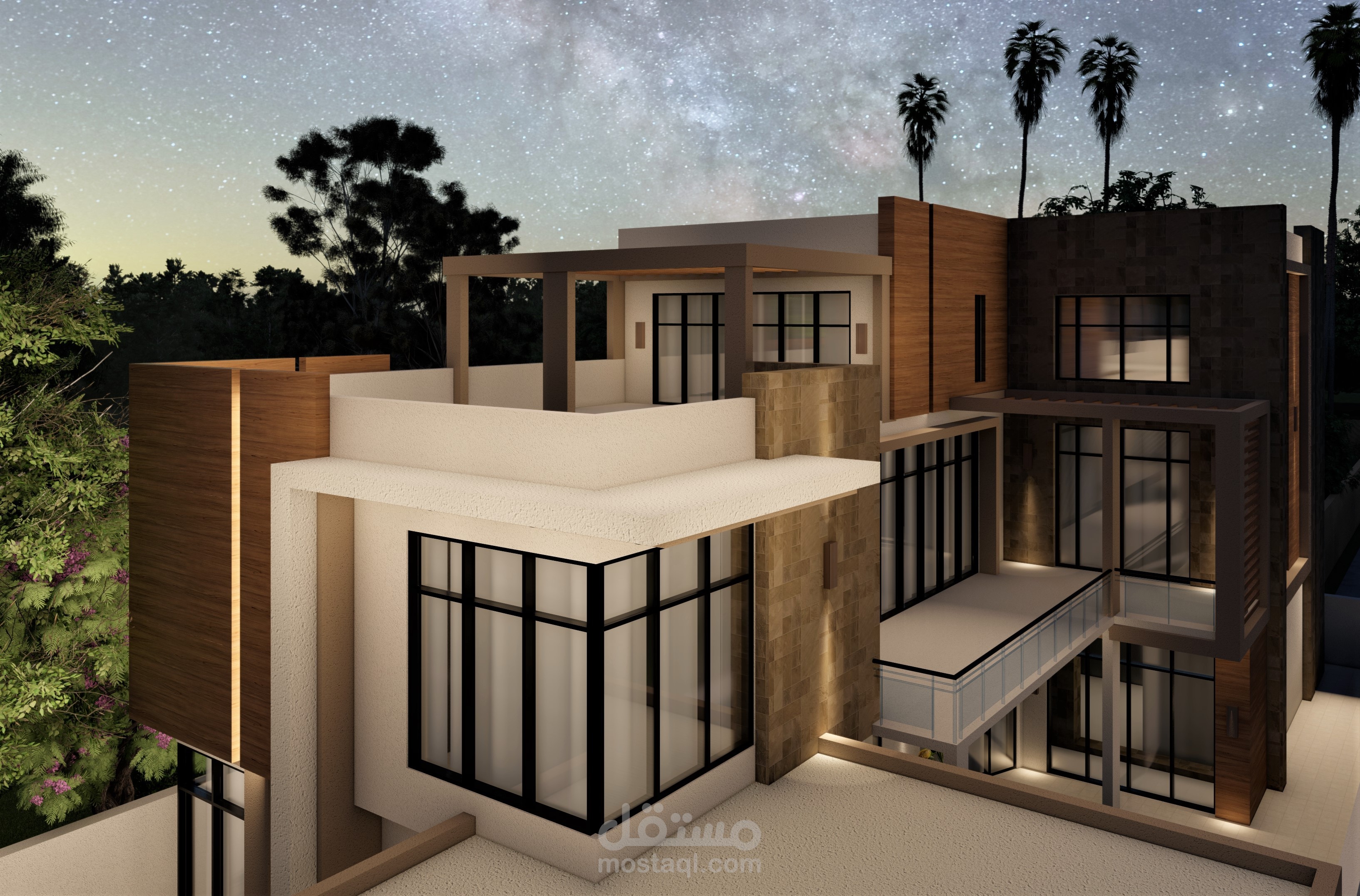 الطابق الثاني: 4 غرف نوم ماستر و صاله معيشه و بلكونه.