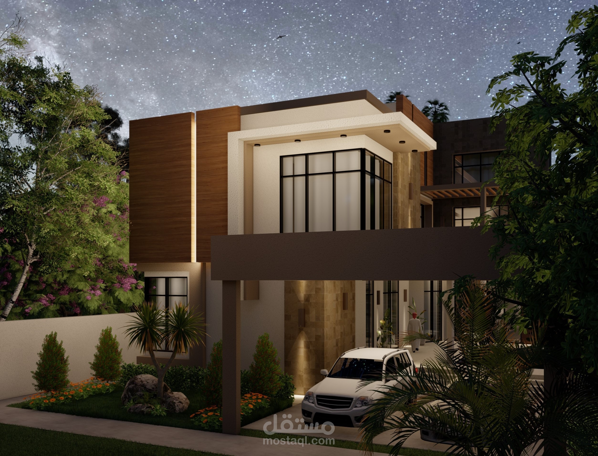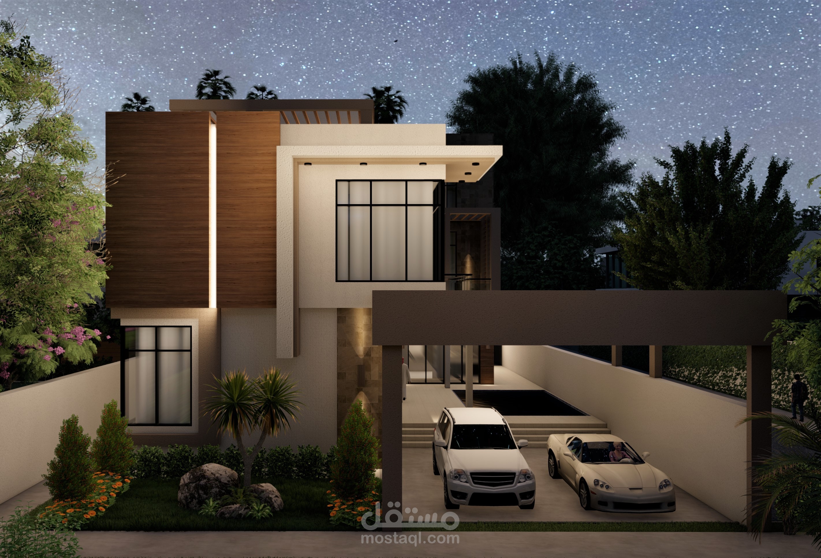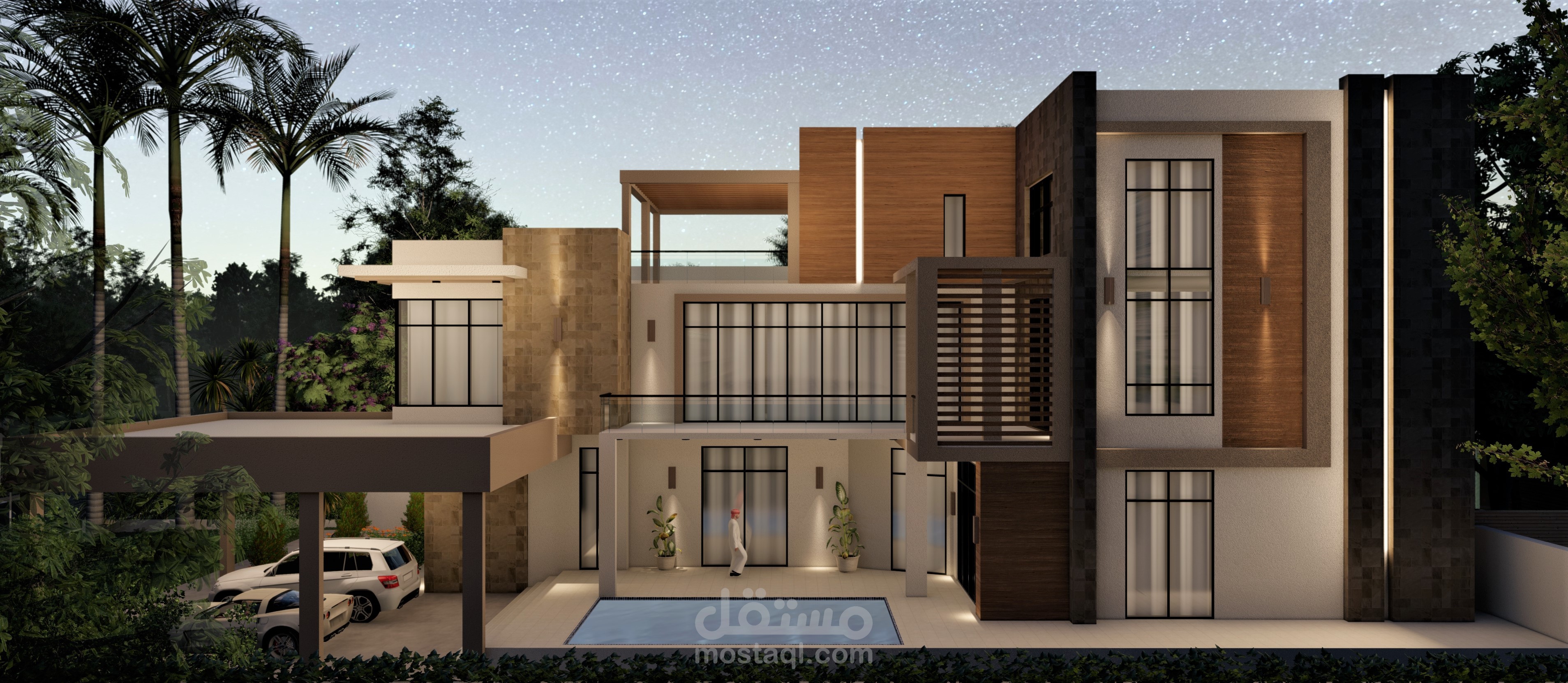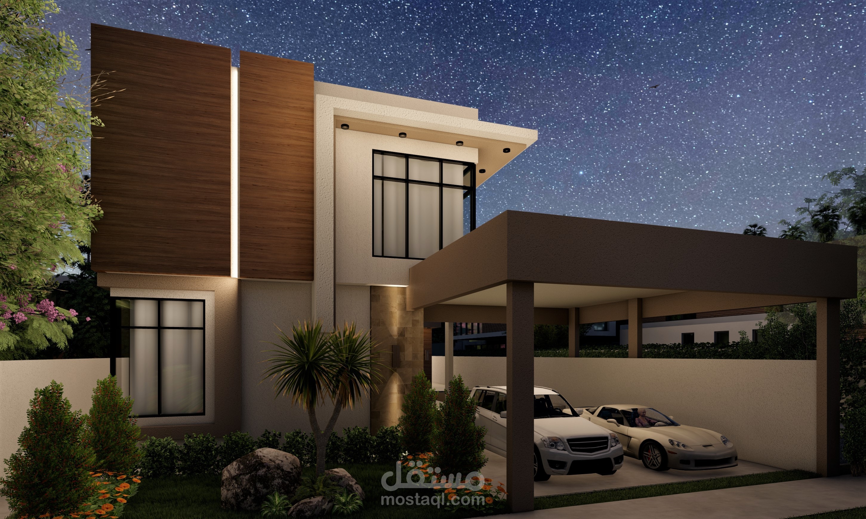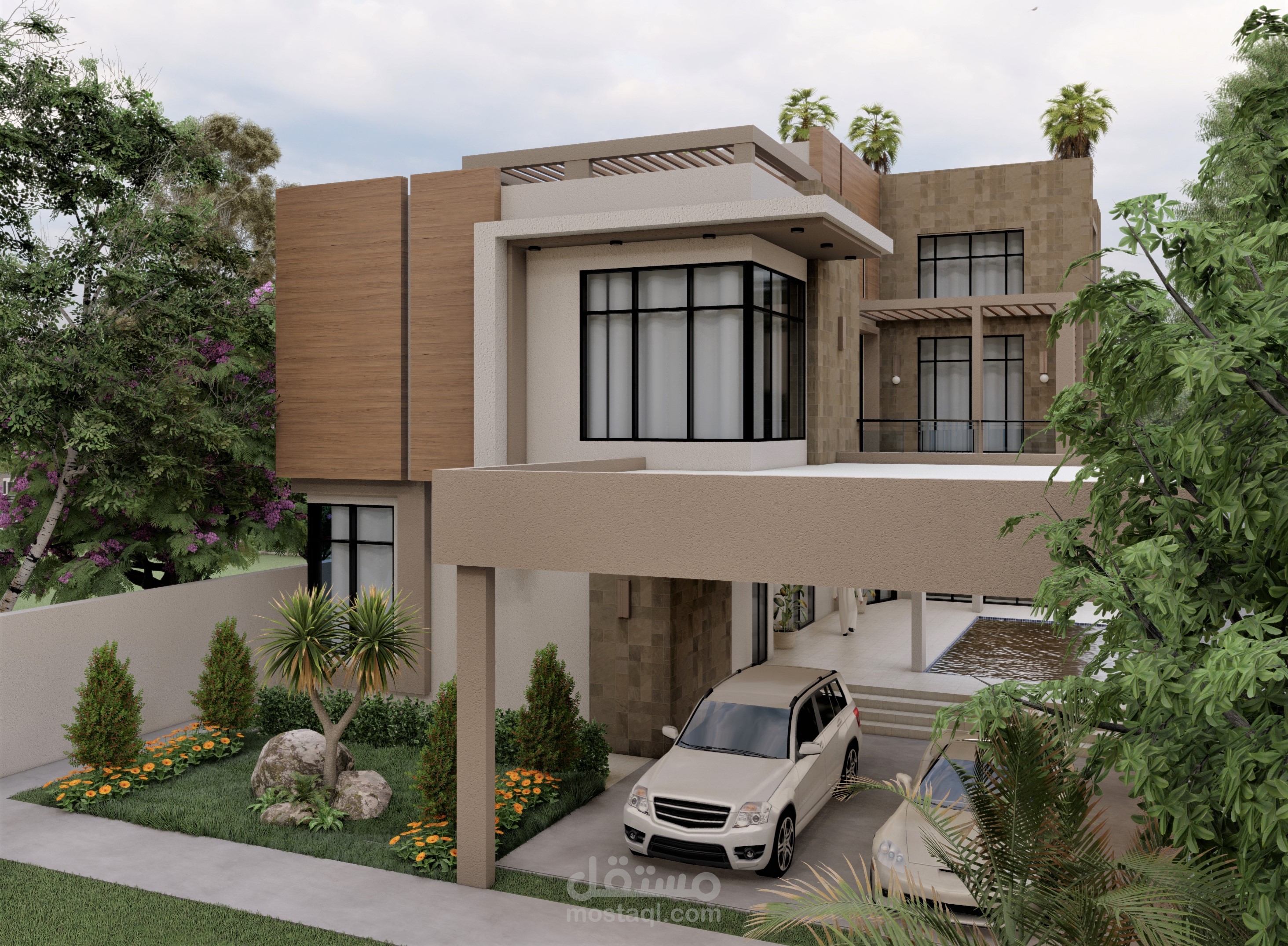 الطابق الثاني: 4 غرف نوم ماستر و صاله معيشه و بلكونه.