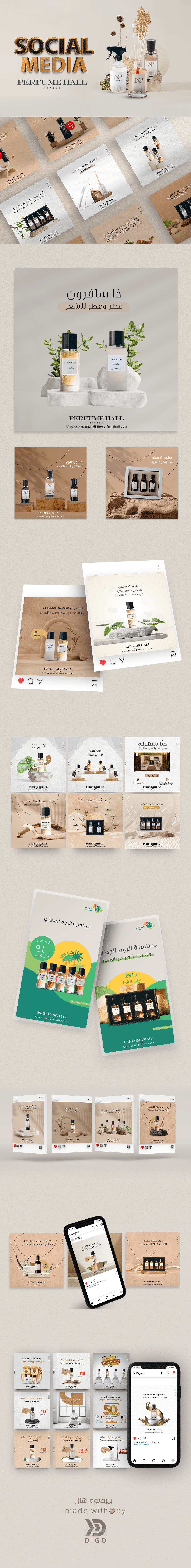 تصاميم سوشيال ميديا لحساب عطور بيرفيوم هول || Perfume Hall في المملكة العربية السعودية
