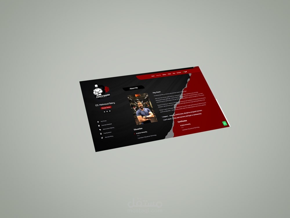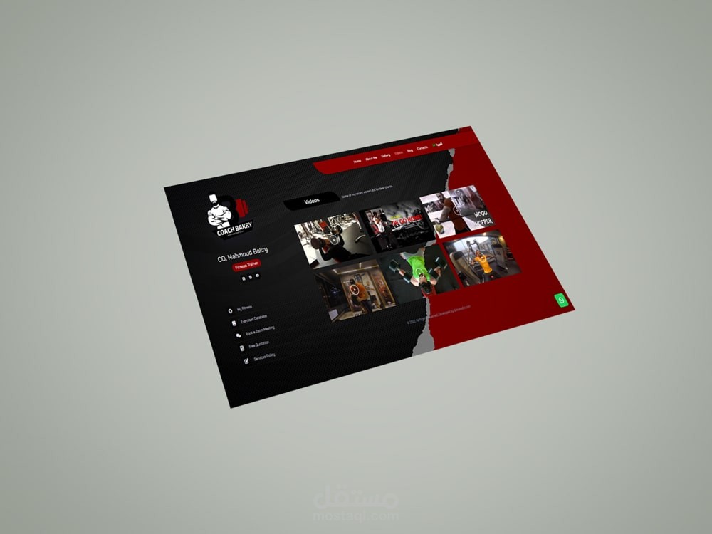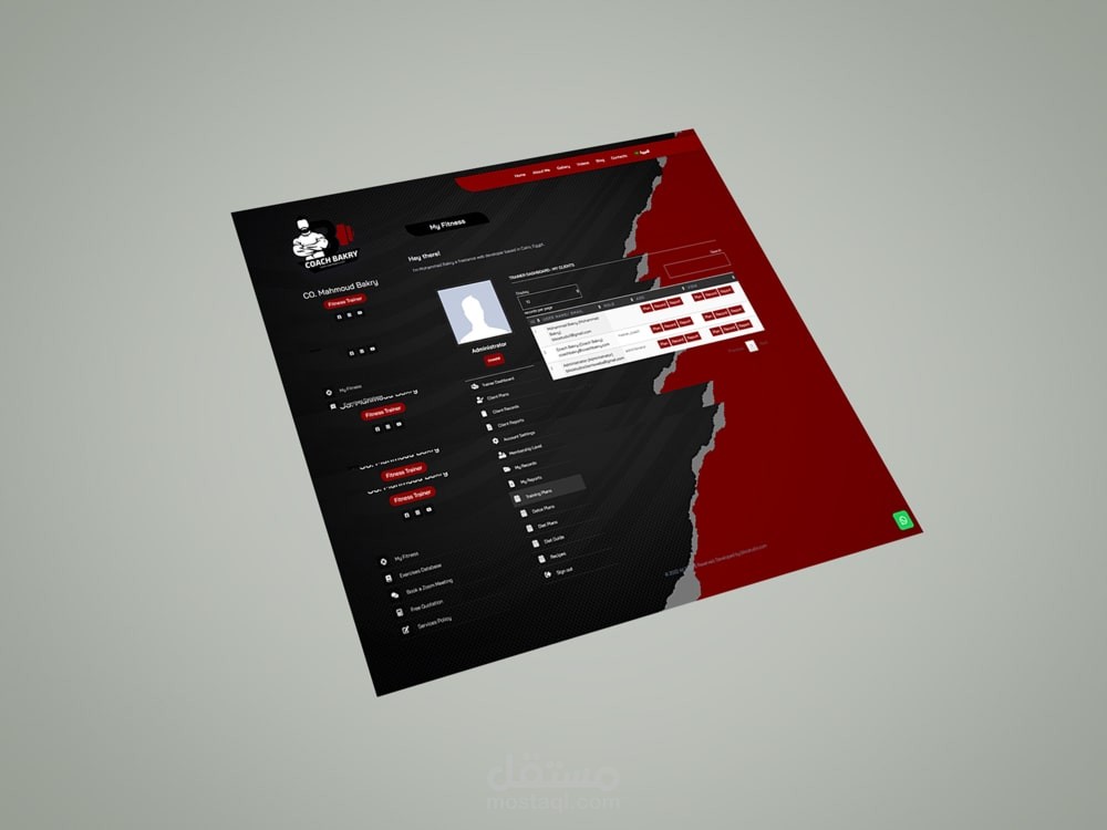 موقع كوتش بكري (موقع شخصي لمدرب لياقة بدنية) يحتوي على نظام متابعة عملاء وتسجيل بيانات التمارين والأنظمة الغذائية وتقارير متابعة الاداء.