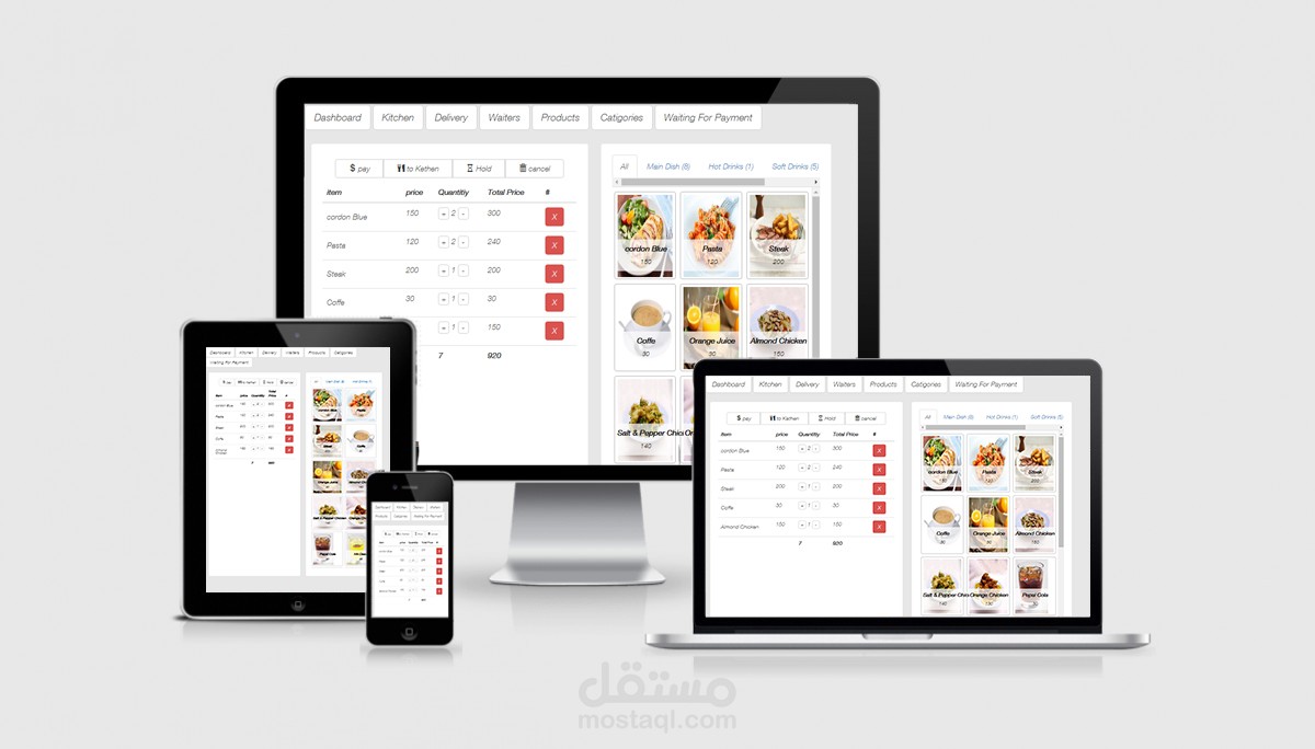 4- Restaurant support with (waiters ,tables,kitchen ,delivery) management system