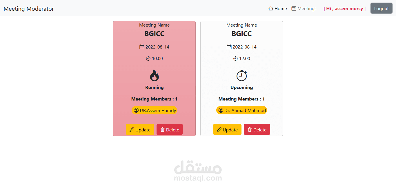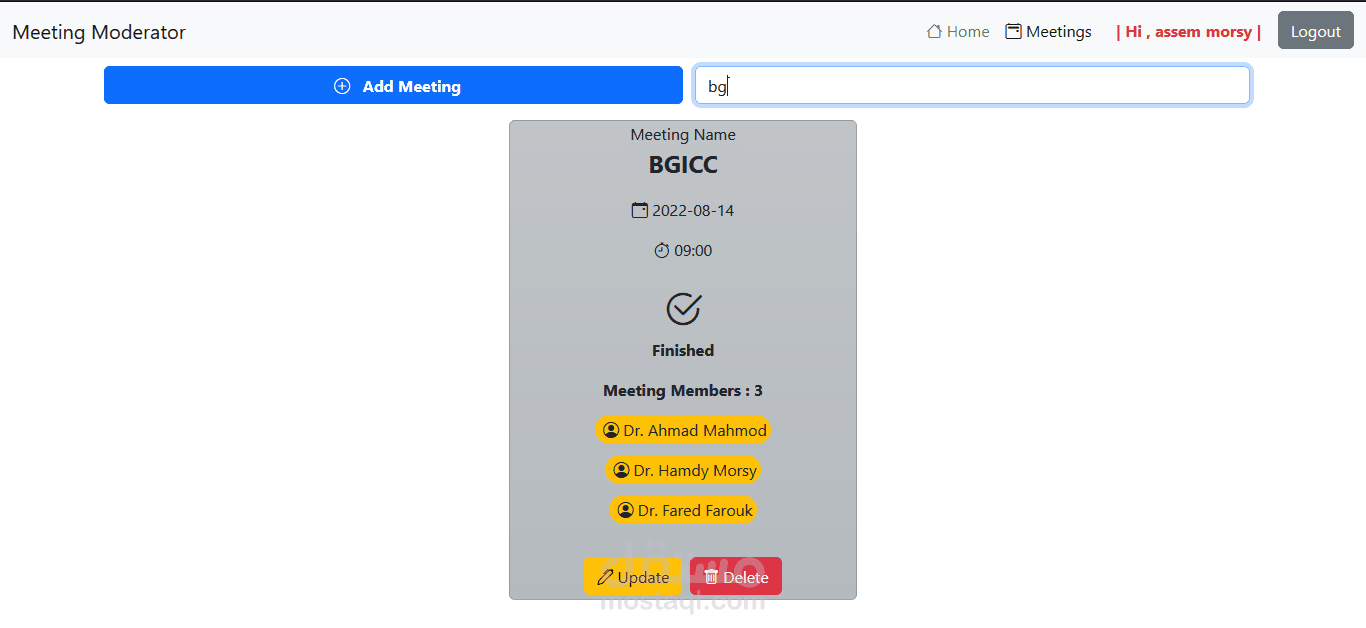 website to manage meetings status ,date , time , members and name then view ordered meetings day by day
