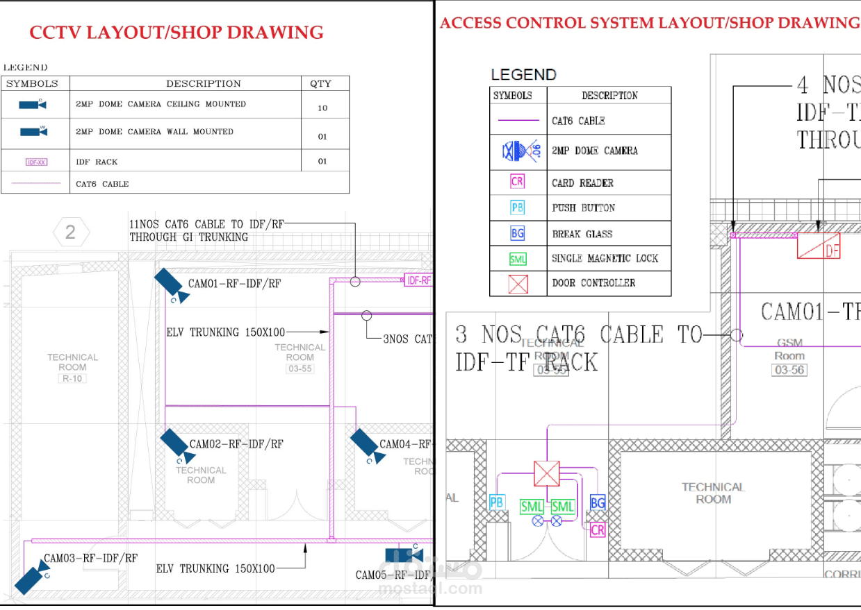 -Design & shop drawing for low current and security systems (fire alarm, CCTV, SMATV, TEL, video intercom, access control)