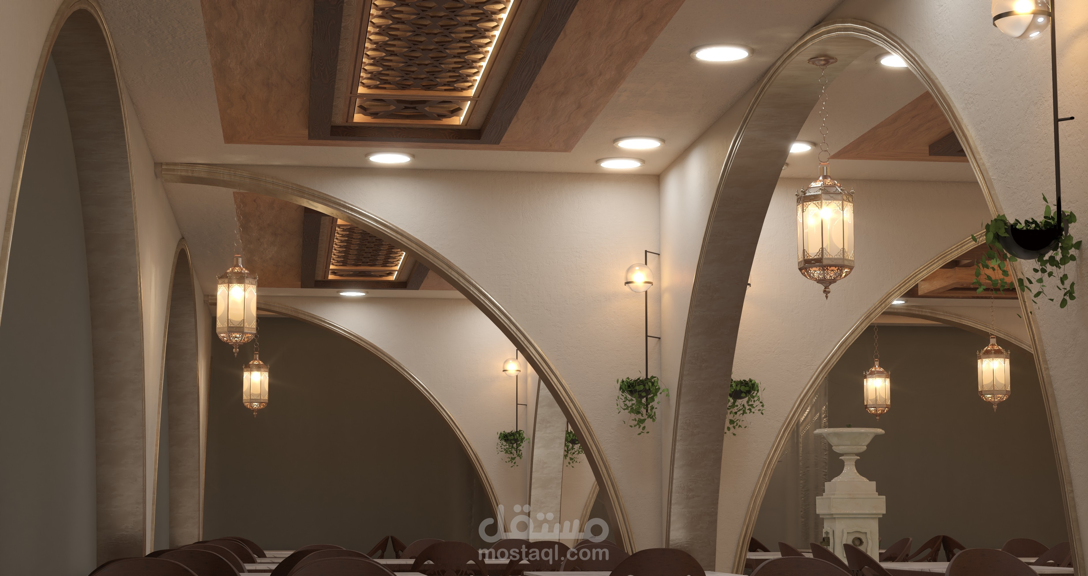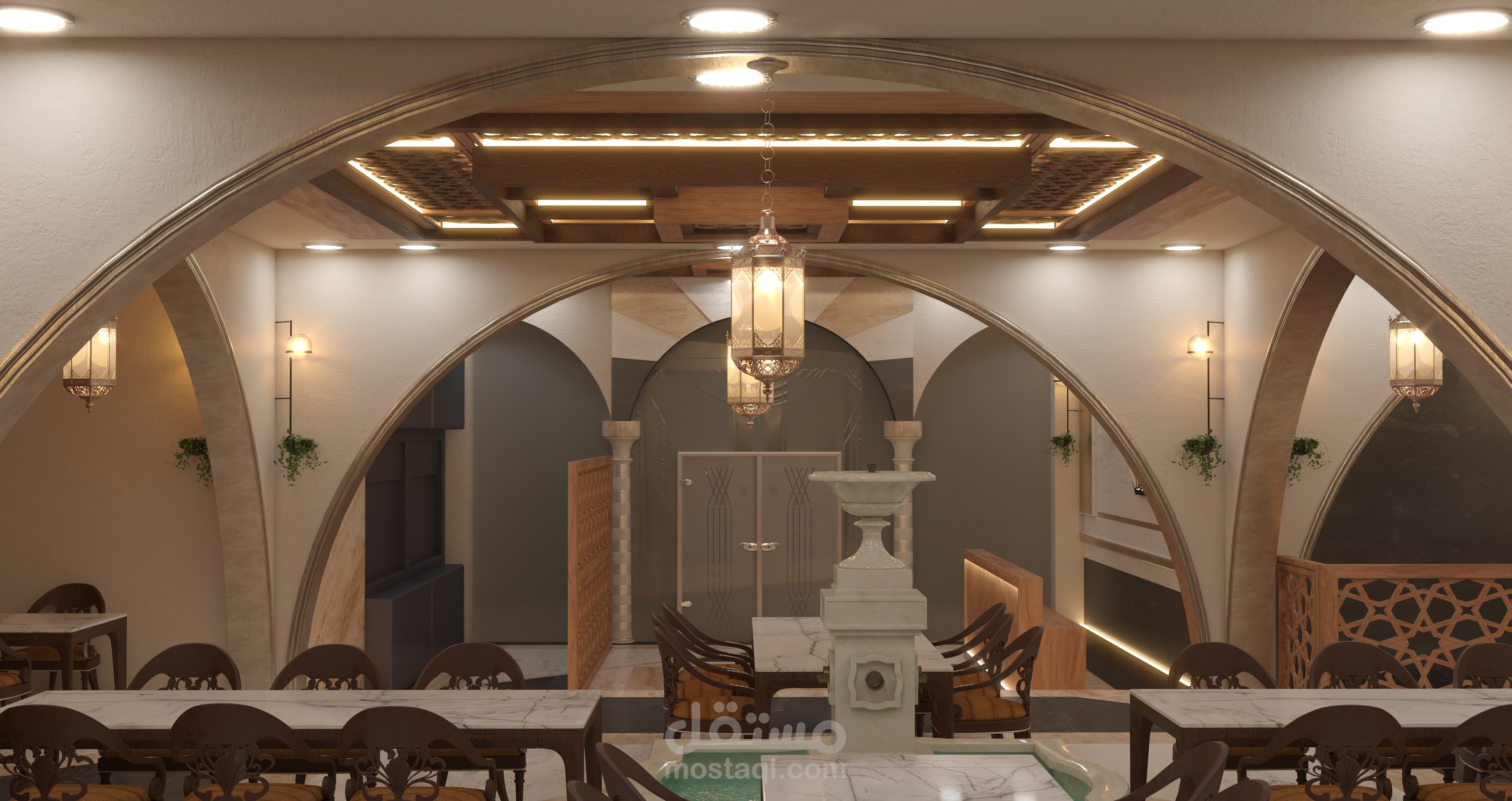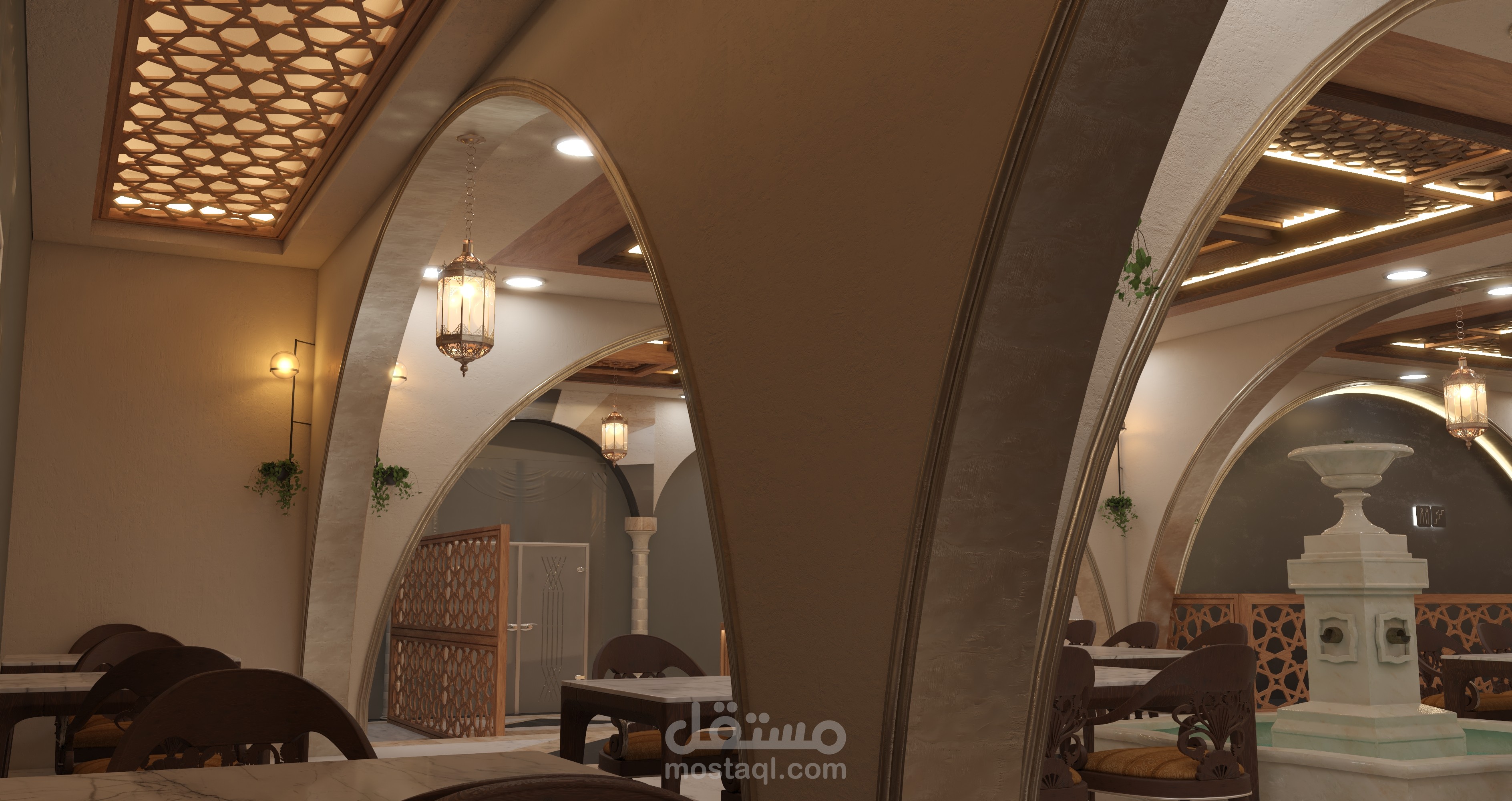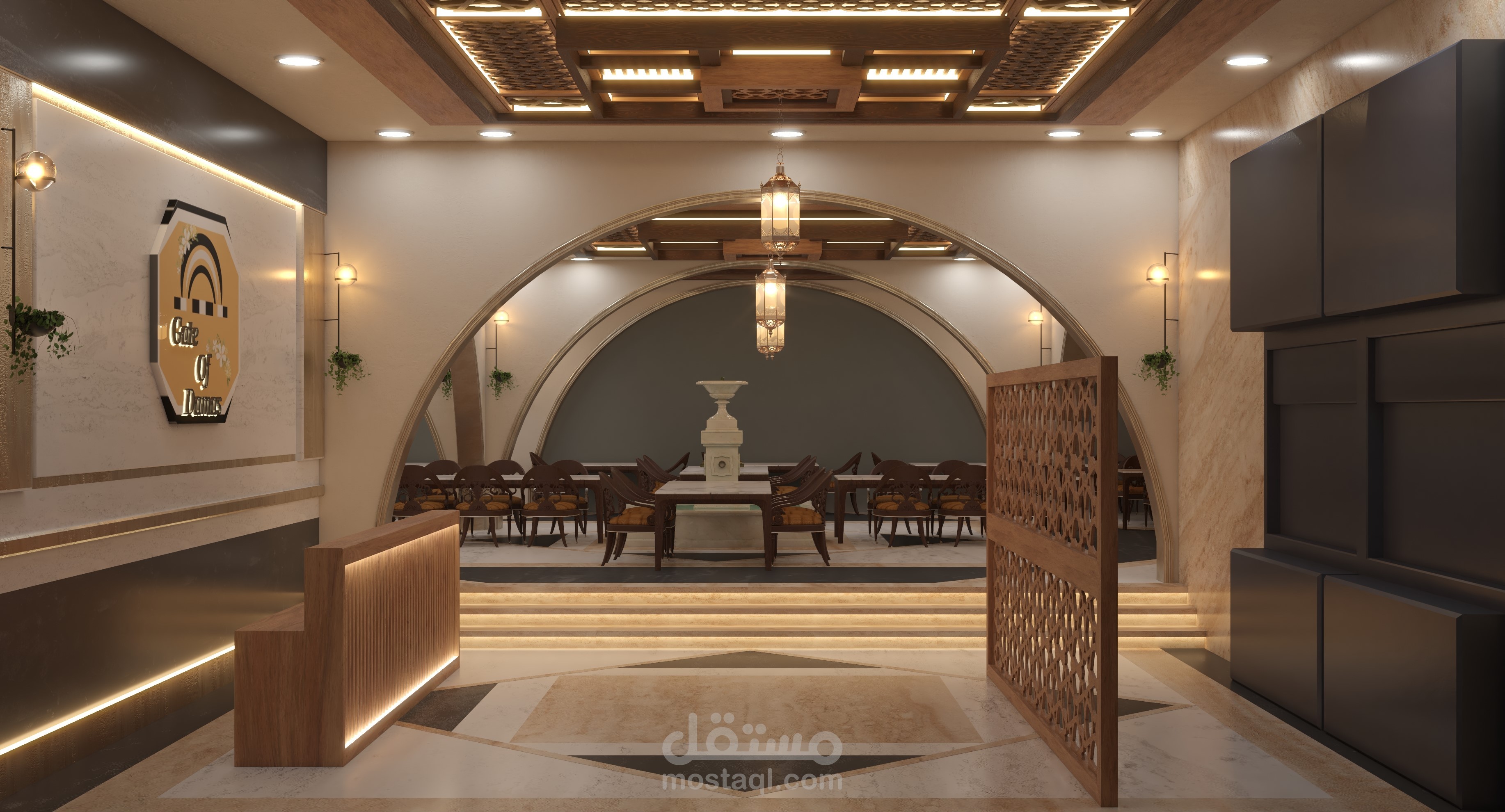 - فكرة المشروع تصميم مطعم بطراز وجمالية المنازل الشامية القديمة مع لمسة عصرية