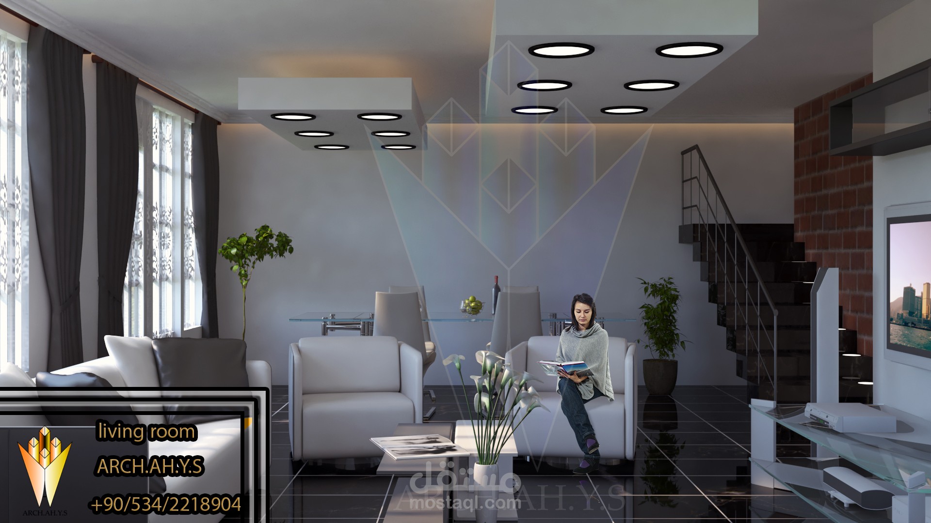 تصميم داخلي لغرفة معيشة في اسطنبول.