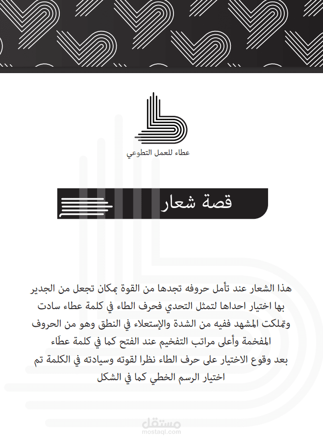 هذا الشعار عند تأمل حروفه تجدها من القوة بمكان تجعل من الجدير بها اختيار احداها لتمثل التحدي فحرف الطاء في كلمة عطاء سادت وتملكت المشهد ففيه من الشدة والإستعلاء في النطق وهو من الحروف المفخمة وأعلى مراتب التفخيم عند الفتح كما في كلمة عطَاء