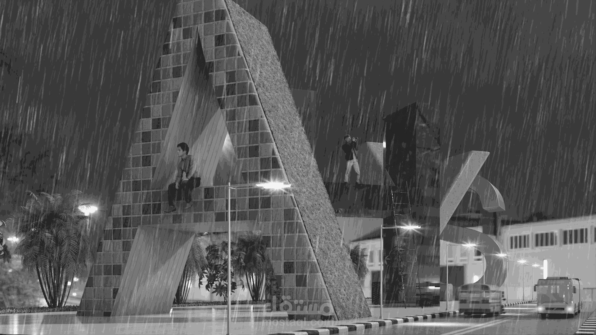 أحرف اسمي مصممه على شكل أبنية مع الحدائق المحيطة بها.