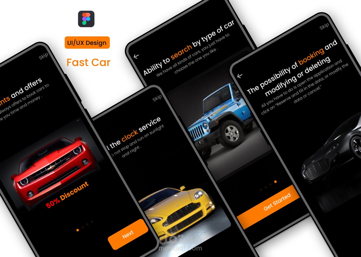 تصميم الشاشات الترحيبية لتطبيق تاجير سيارات باستخدام احدث البرامج Figma