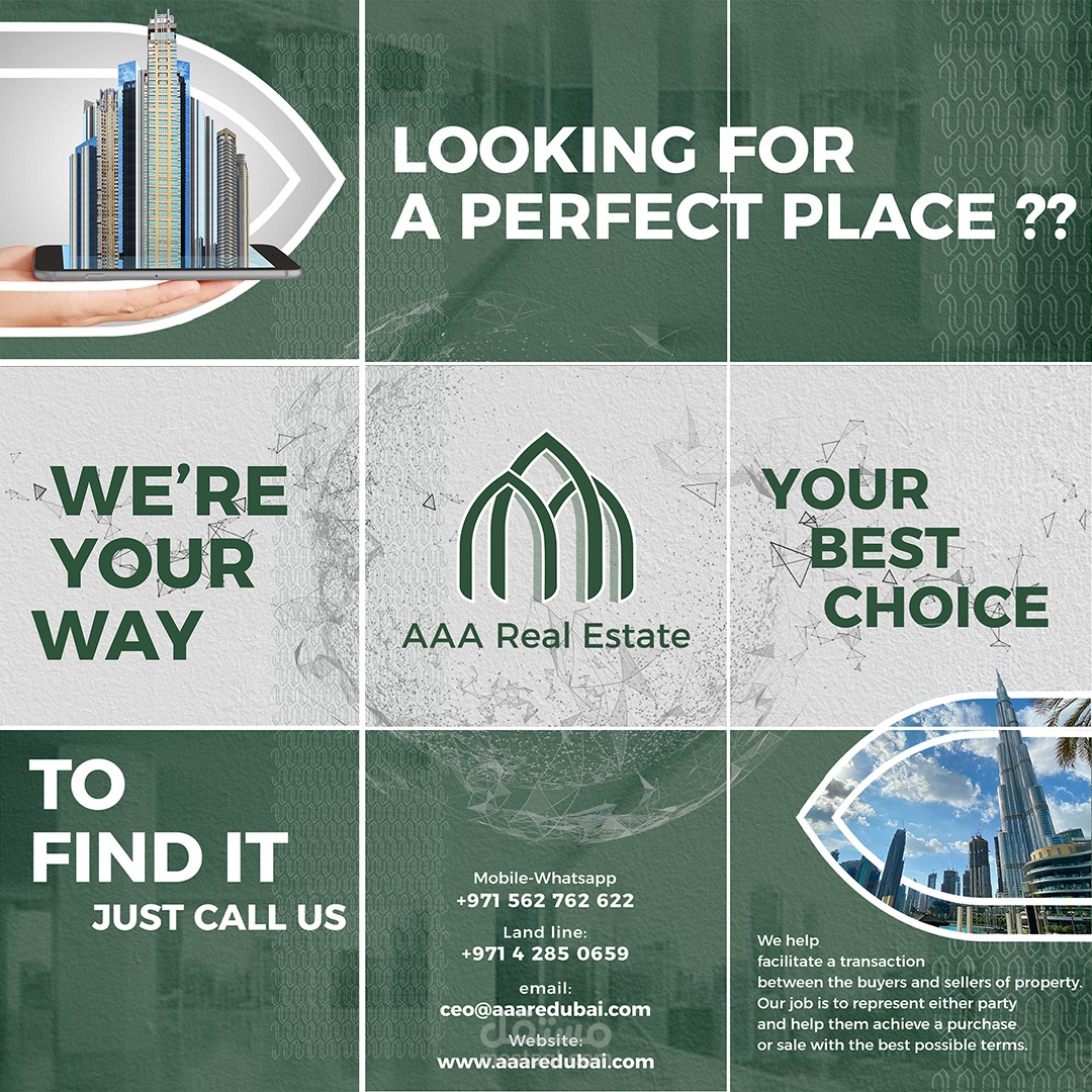 بناك لوغو وهوية بصرية كاملة وثيم انستغرام لشركة عقارات في دبي